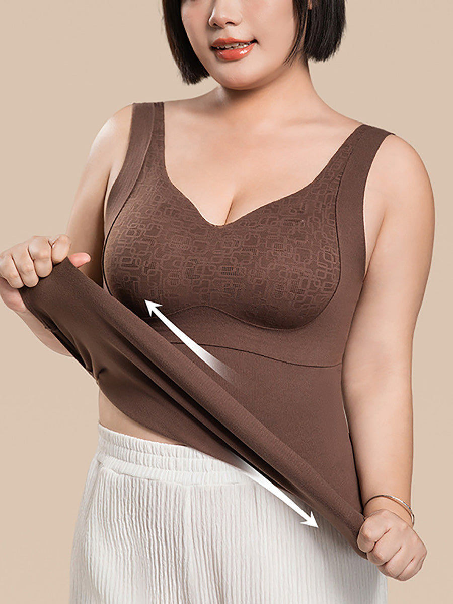 Women Winter Warm Pure Color With Bra Pads Base Vest