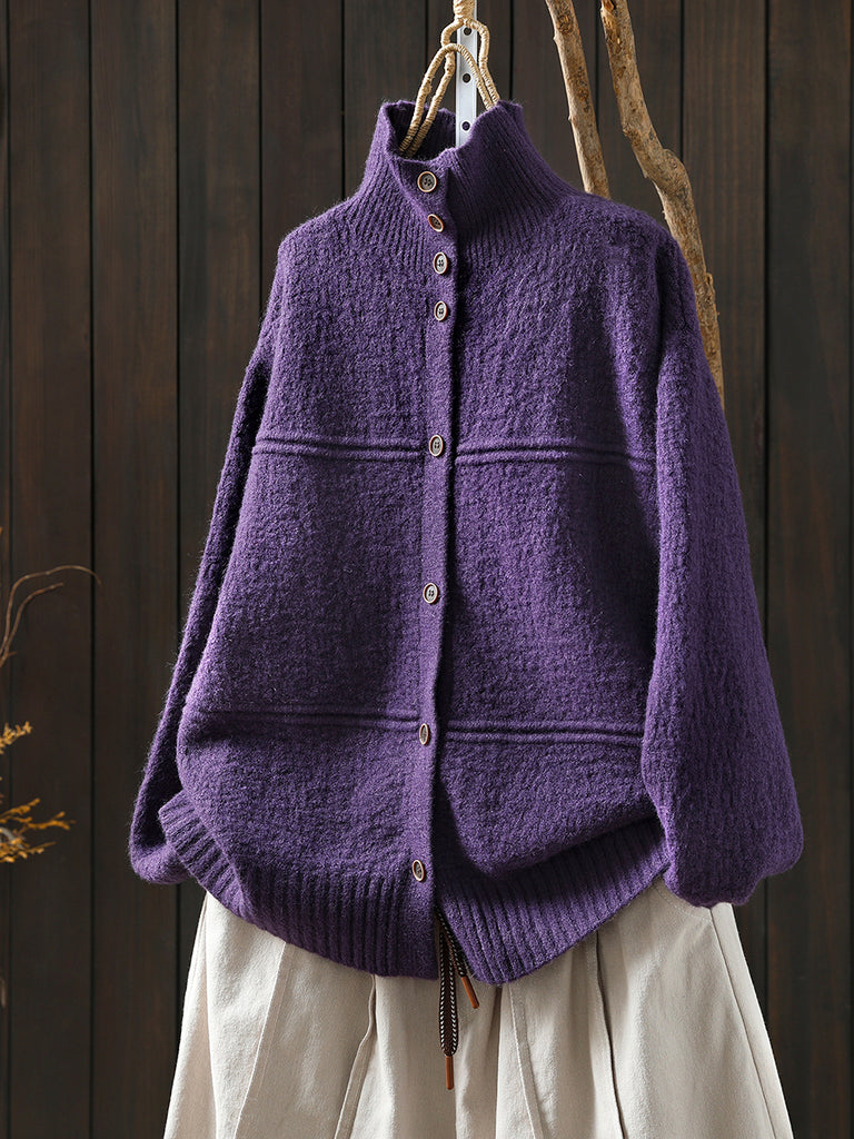 Women Autumn Artsy Pure Color Turtleneck Cardigan Sweater
