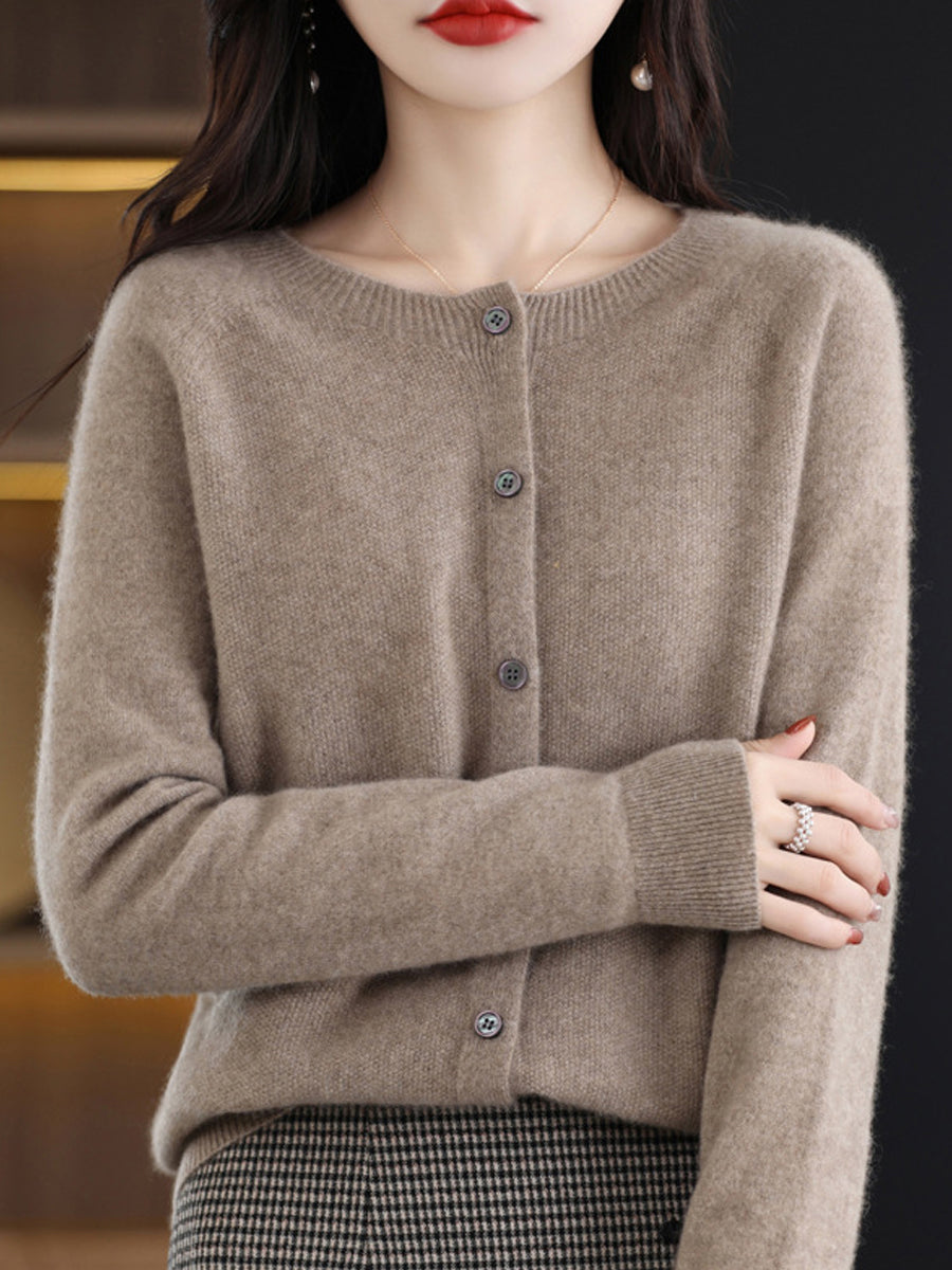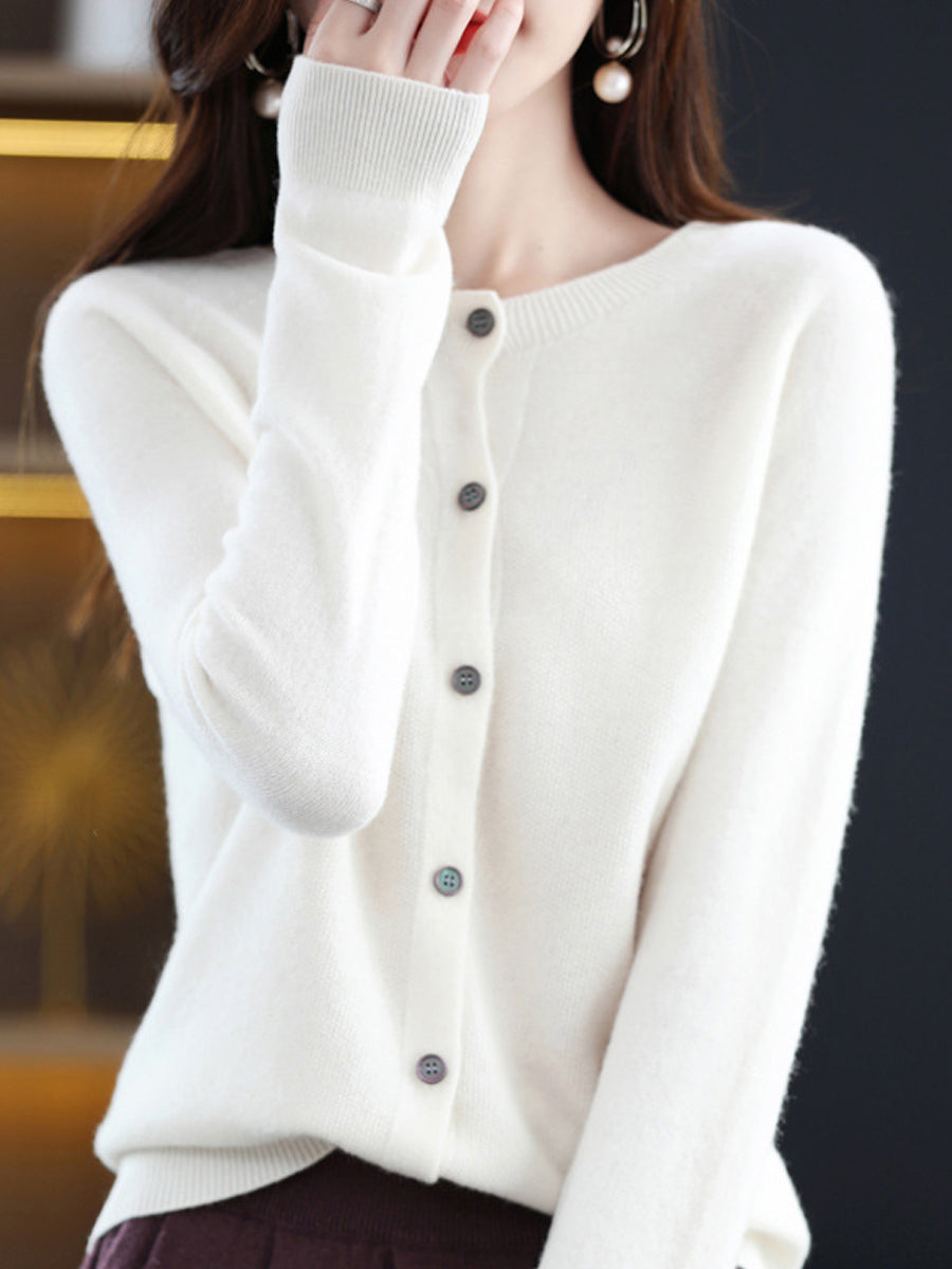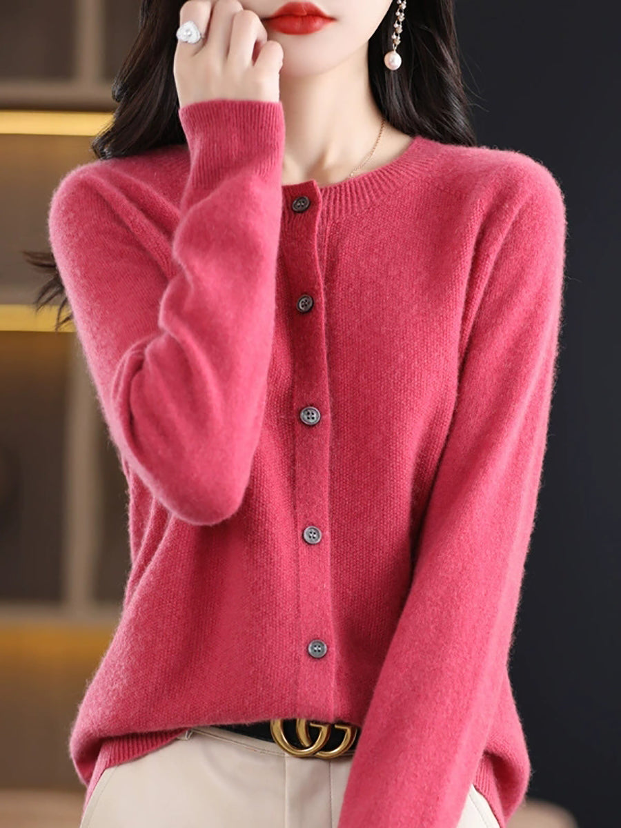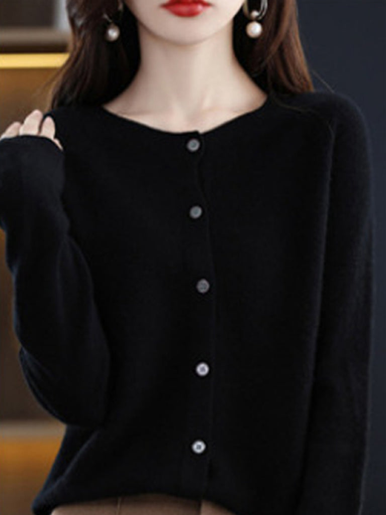 Women Autumn Casual Pure Color O-Neck Wool Sweater