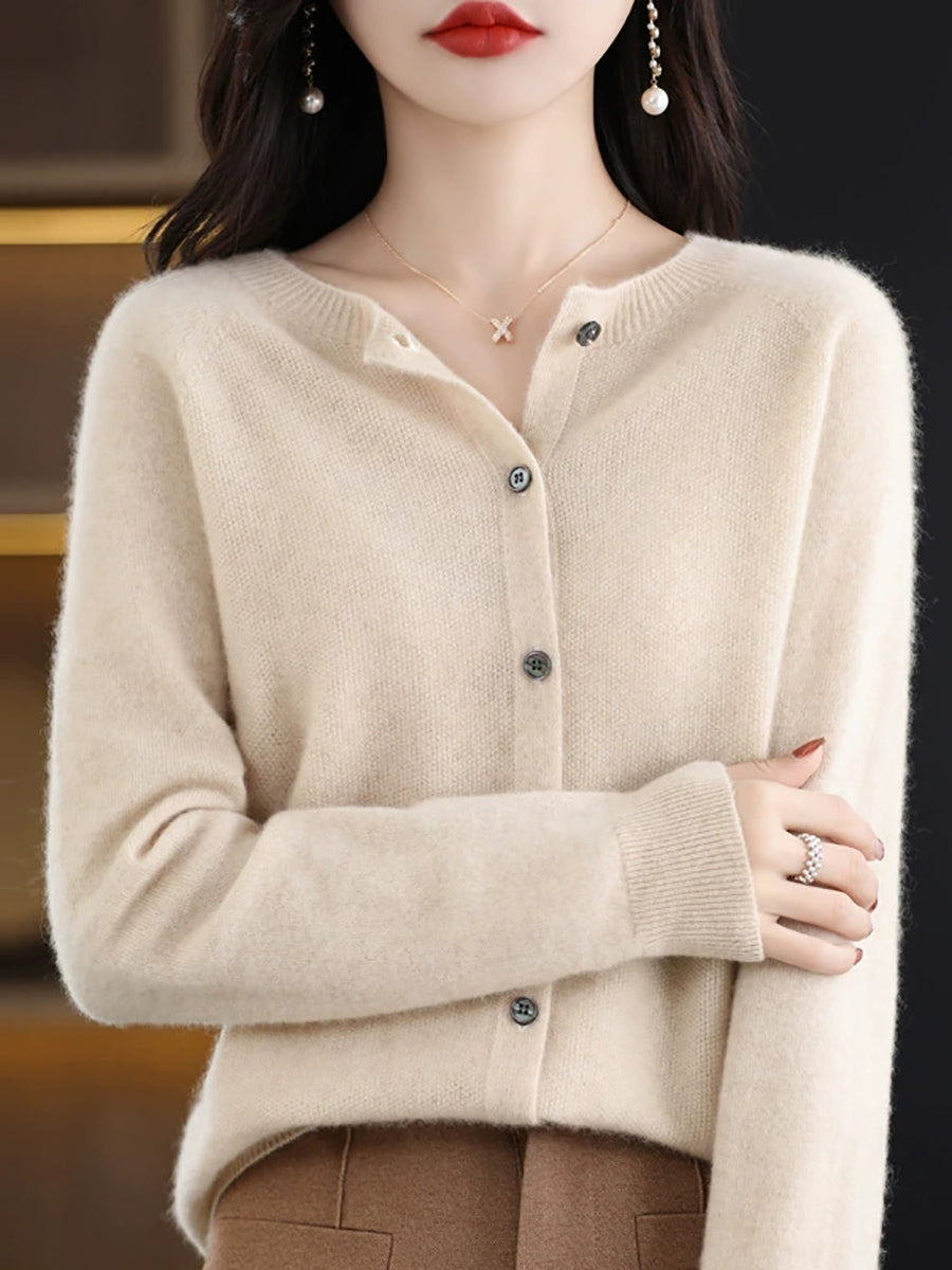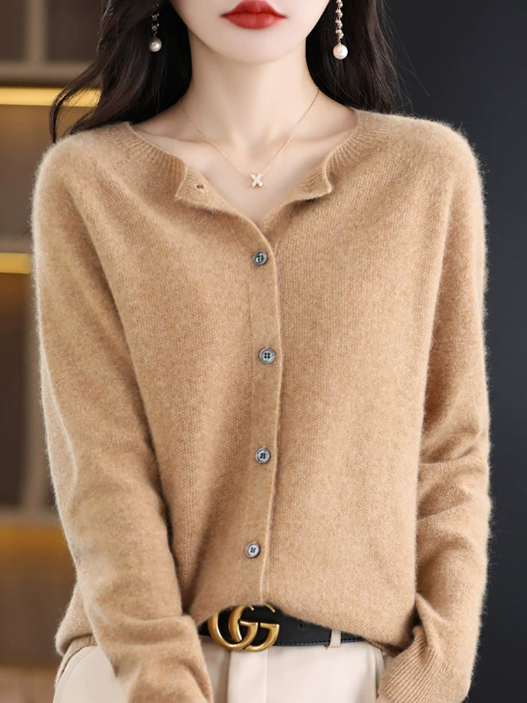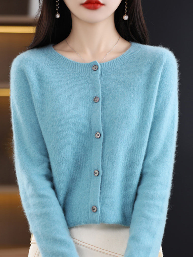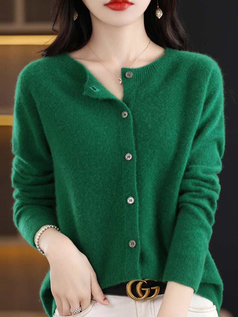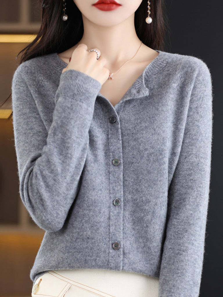Women Autumn Casual Pure Color O-Neck Wool Sweater