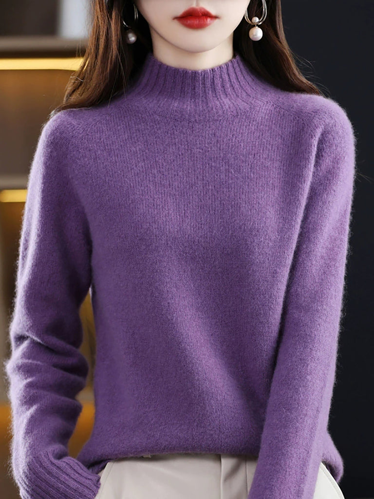 Women Autumn Pure Color 100%Wool Stand Collar Sweater