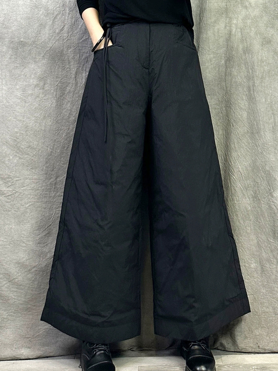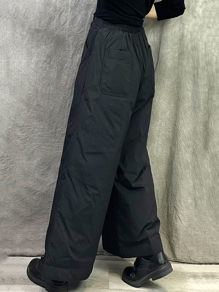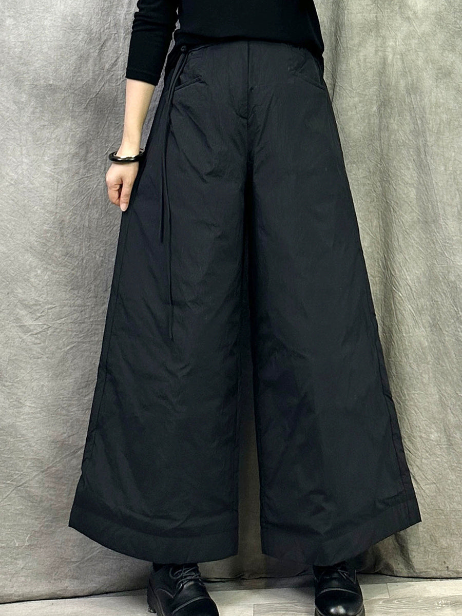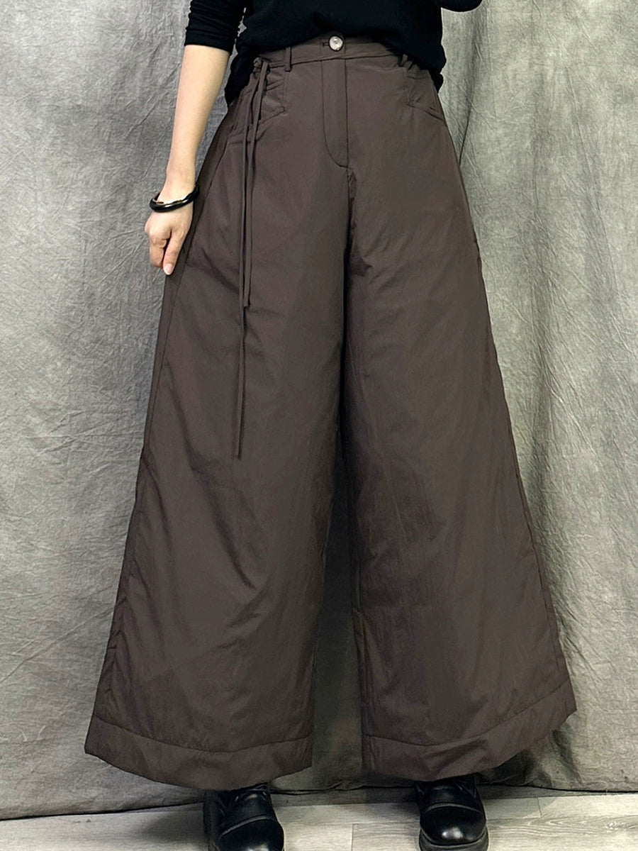 Women Winter Casual Pure Color Down Wide-leg Pants