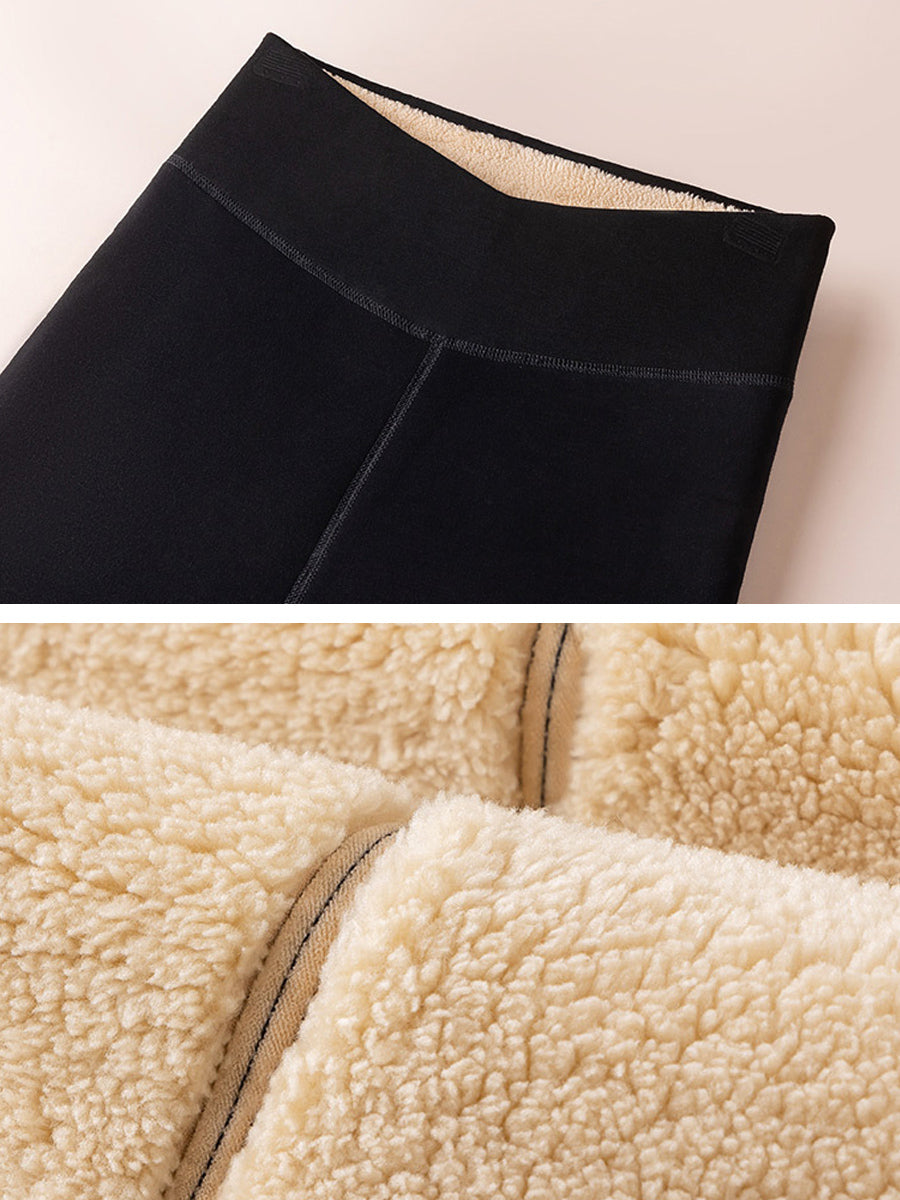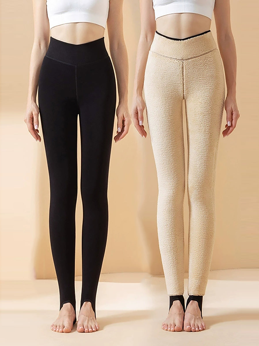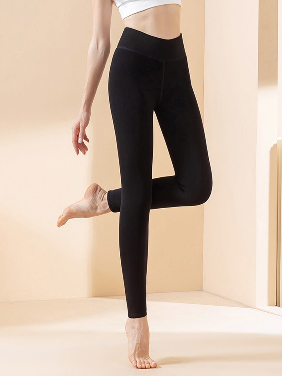Women Winter Warm Pure Color Fleece-lined Leggings