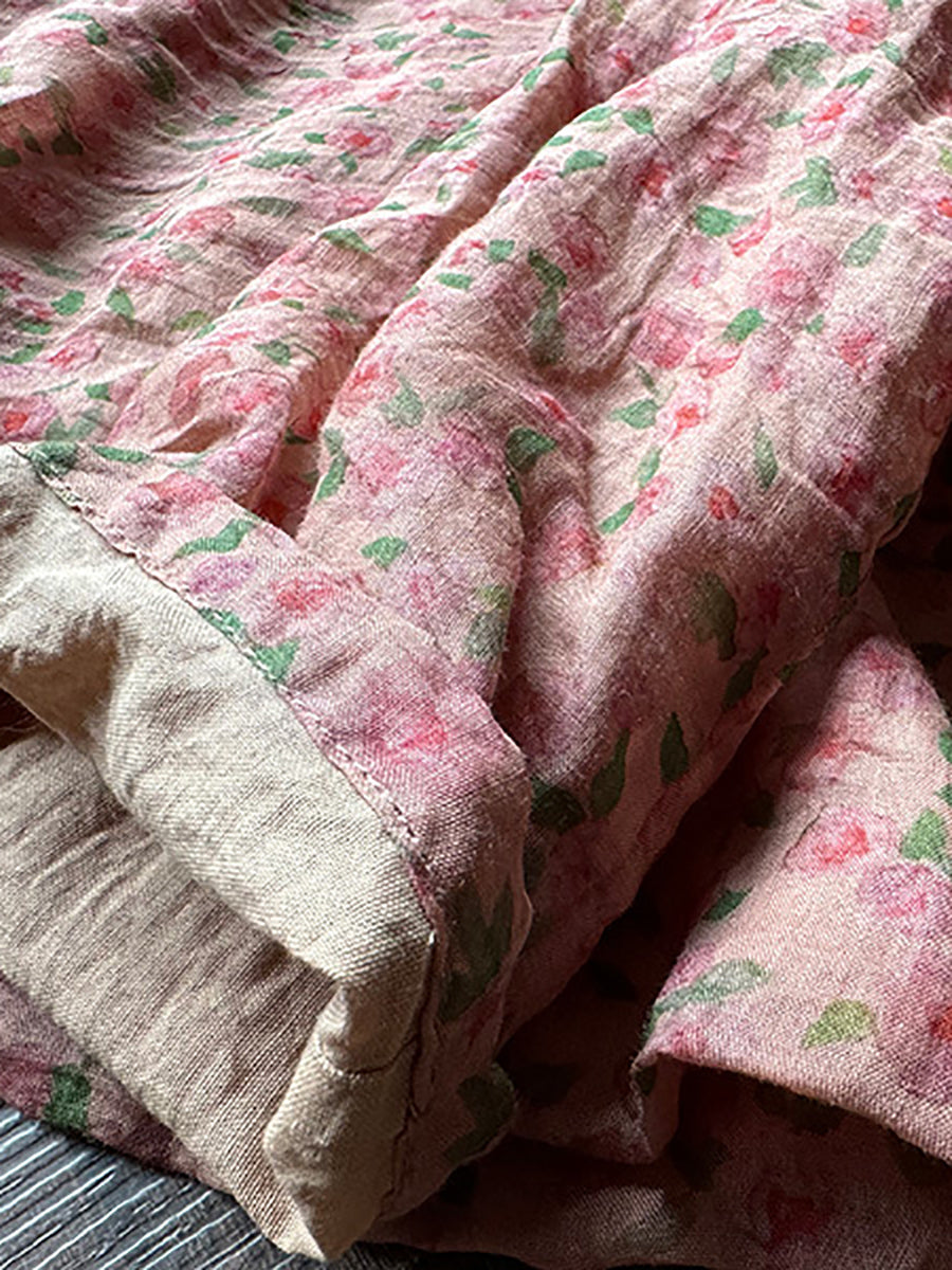 Crafted from ramie fabric, with a lovely floral pattern, this turtleneck blouse features full raglan sleeves and an artistic aesthetic. Perfect for the seasons of spring and autumn.