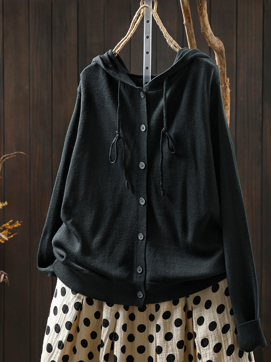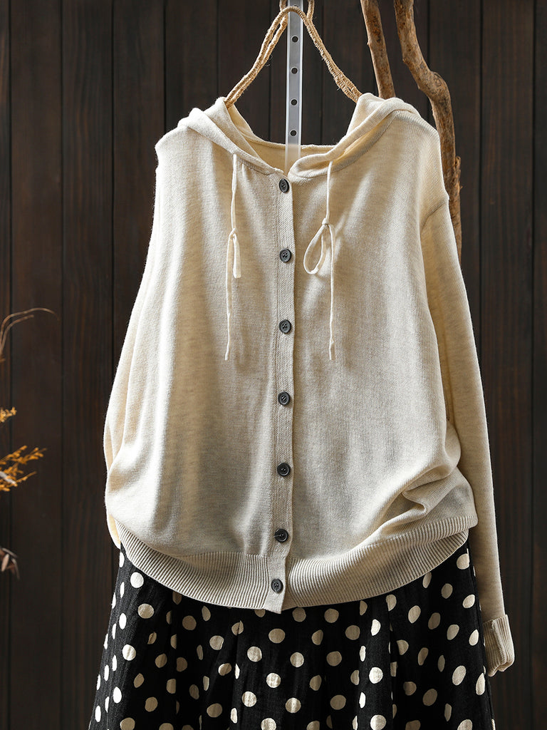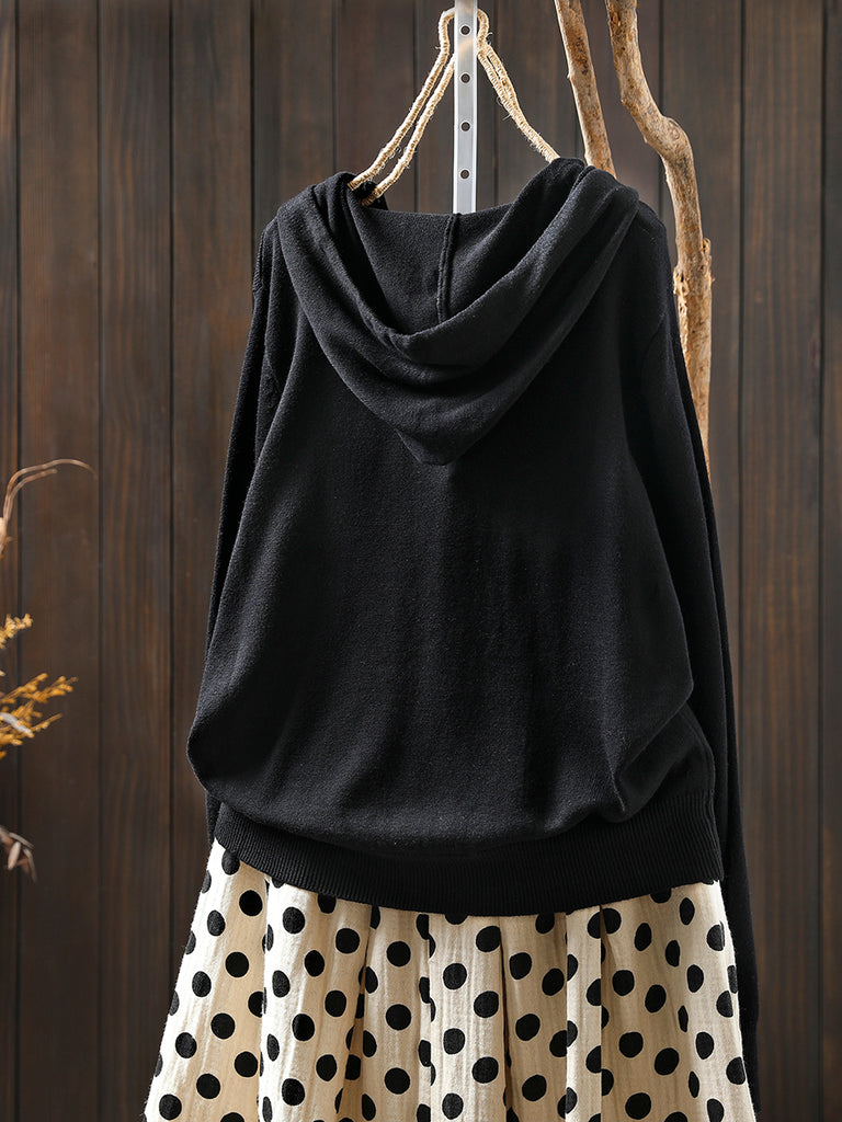 Women Autumn Casual Pure Color Hooded Knitted Blouse