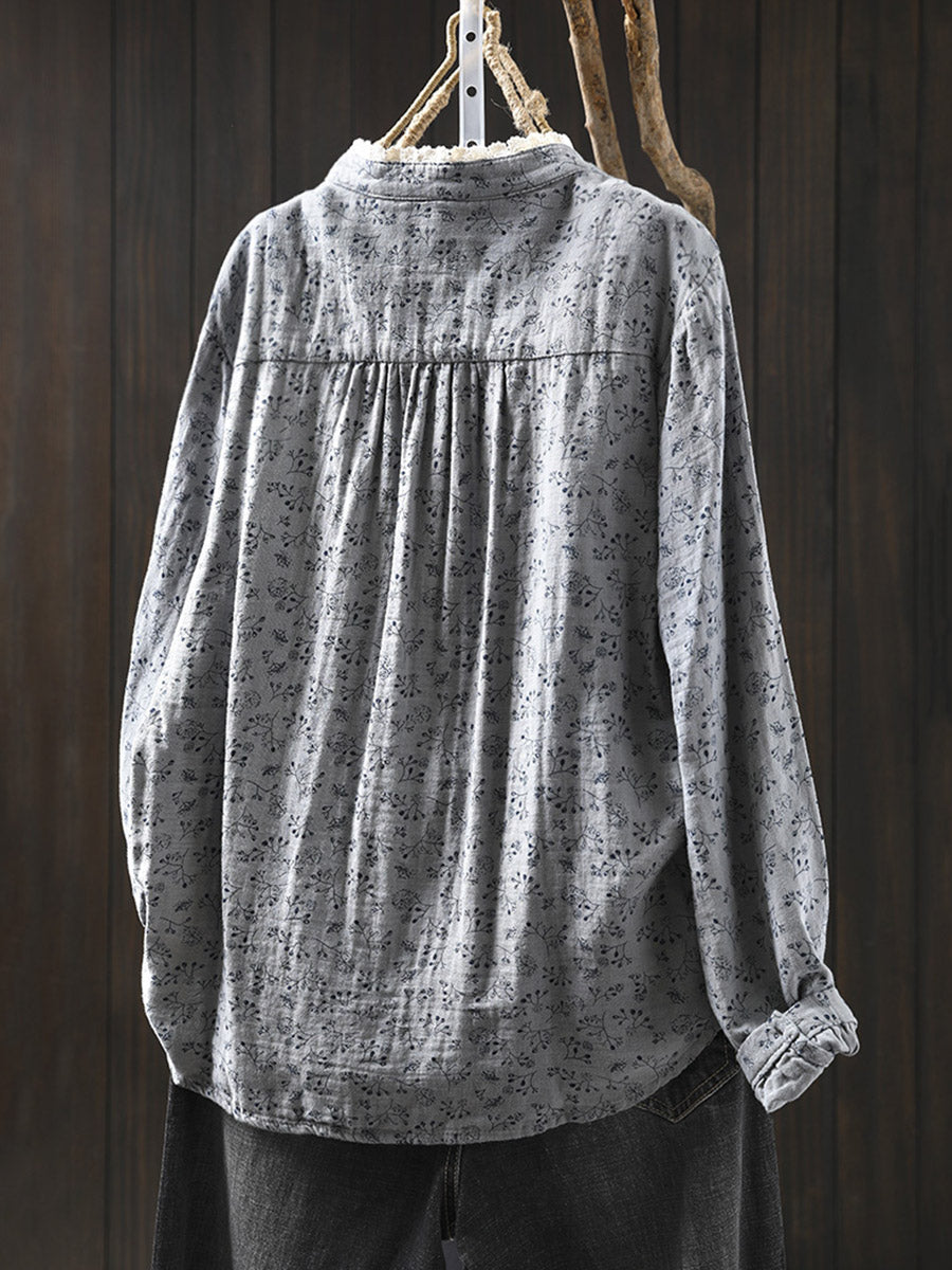 Women Autumn Floral 100%Cotton Lace Collar Shirt