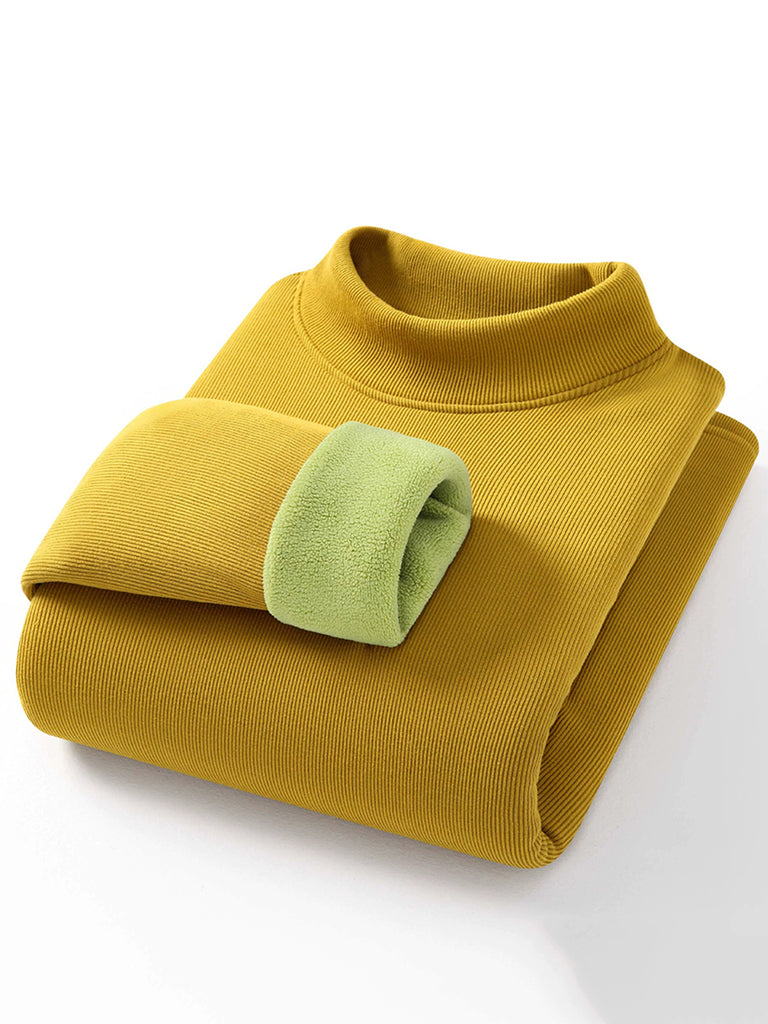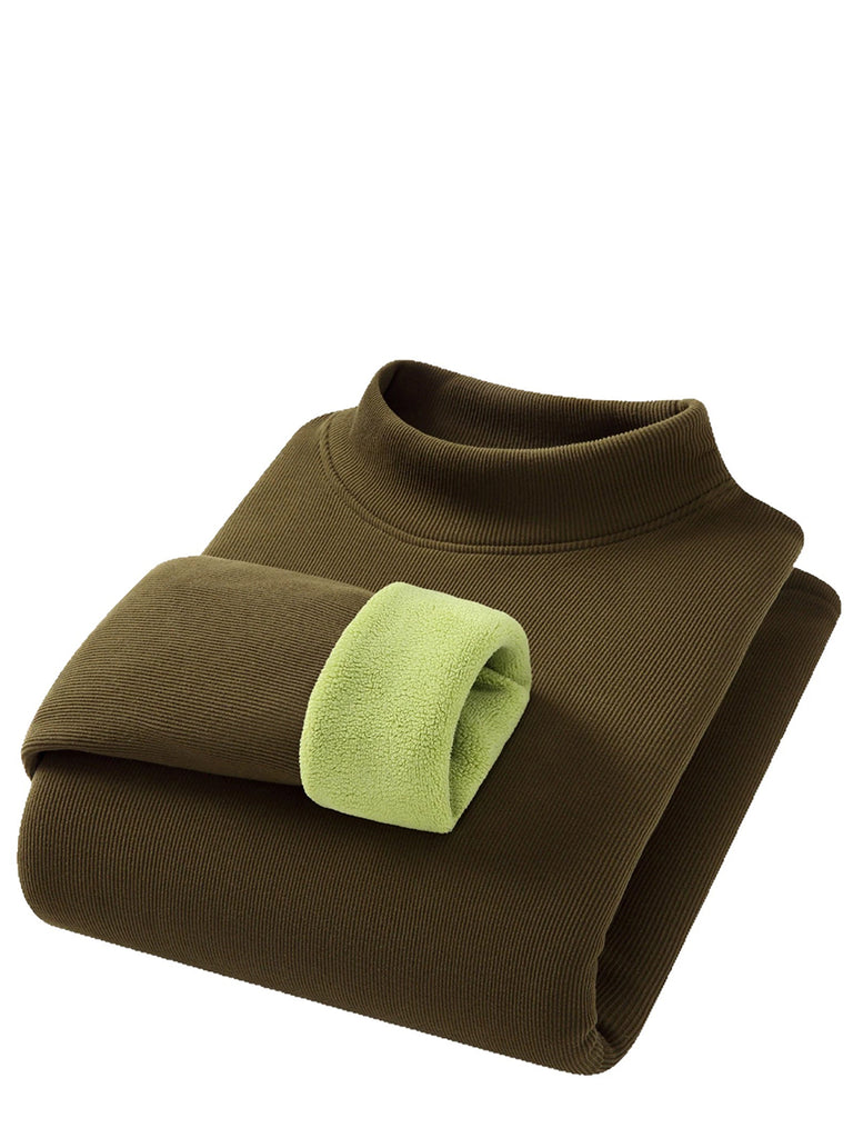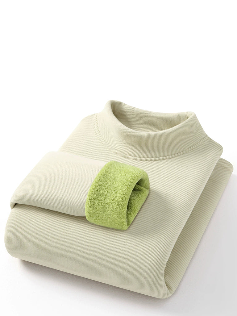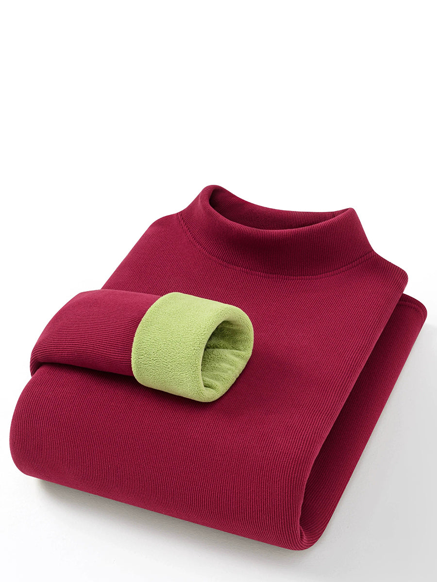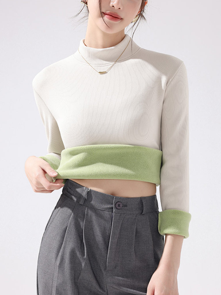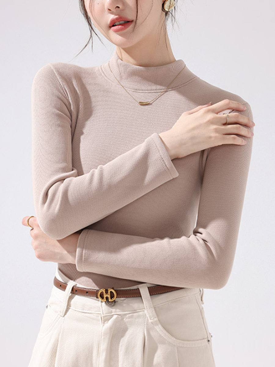 Women Autumn Pure Color Fleece-lined Half-Turtleneck Blouse