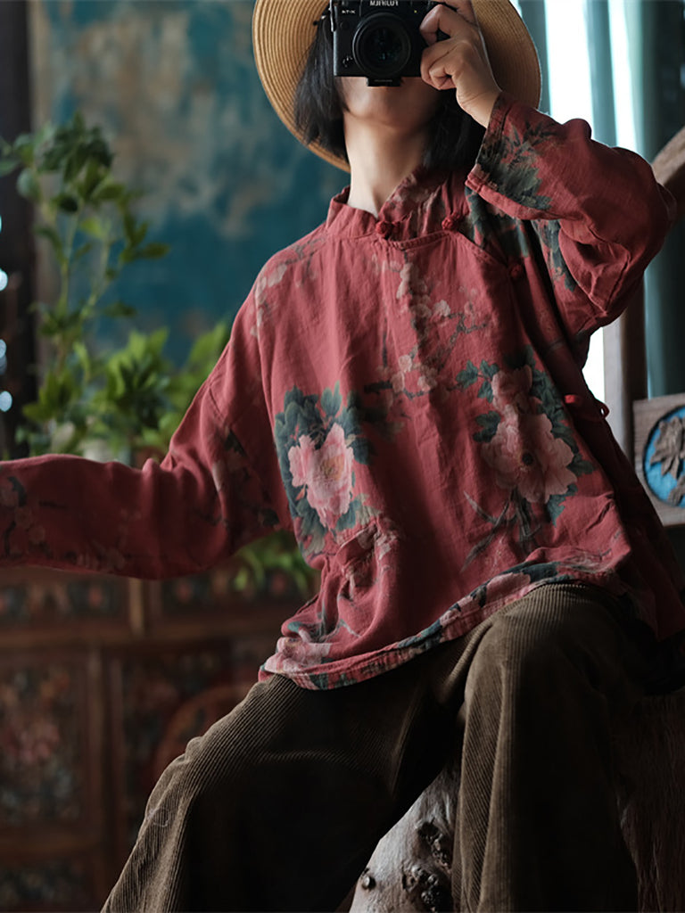 Women Retro Flower Spring Loose Shirt