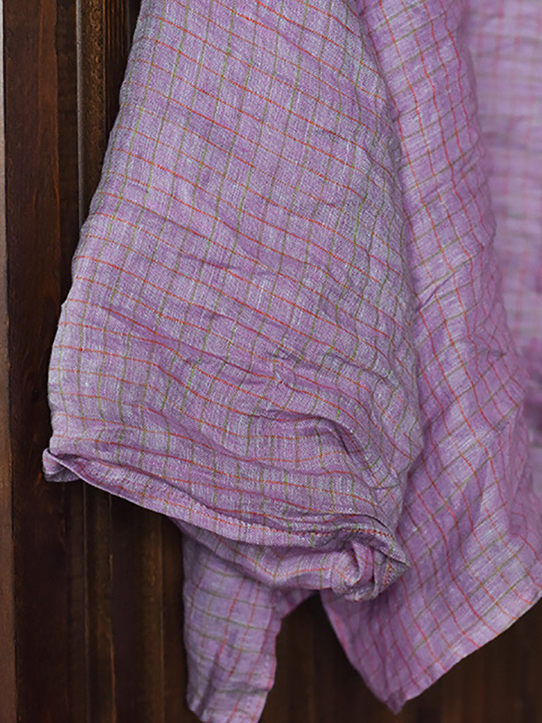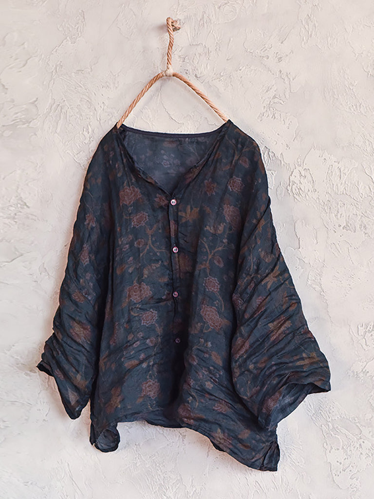 Women Summer Vintage Button-up Long Sleeve Linen Shirt