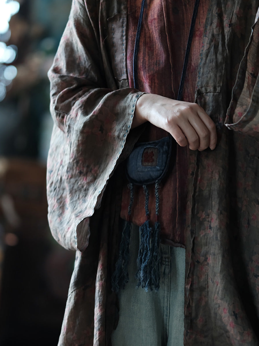 Women Summer Ethnic Flower Loose Ramie Shirt Coat