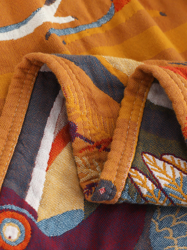 6 Layer Cotton Bird Jacquard Bedcover Sofa Blanket