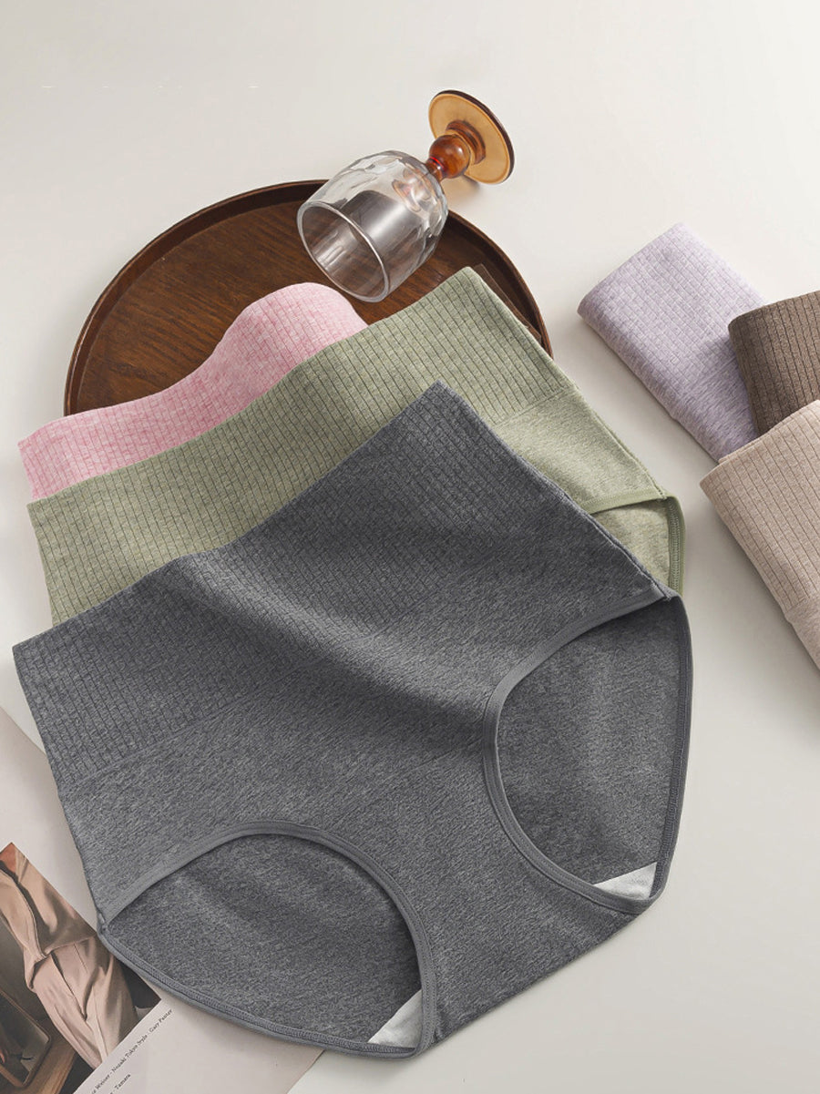 6 Pieces Women Winter Pure Color High Waist Underwear