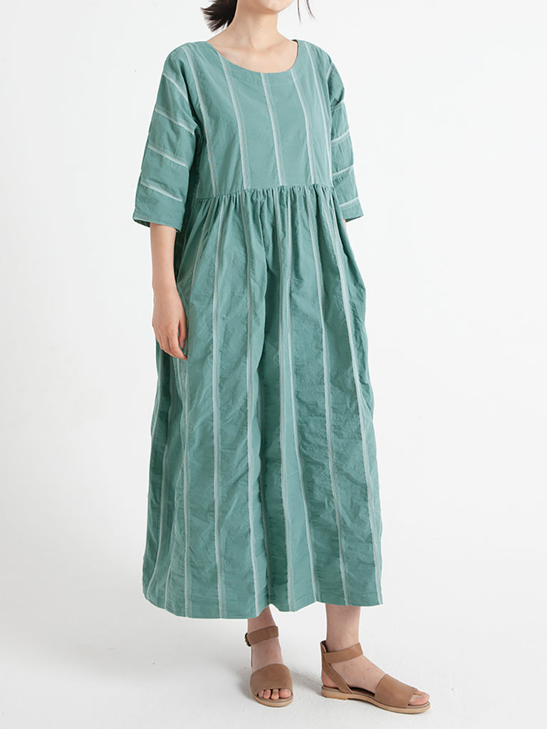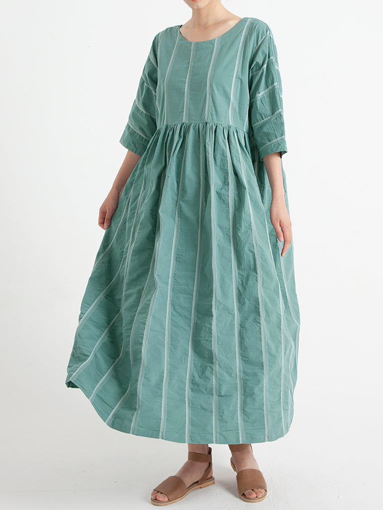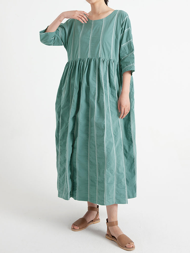 Plus Size Cotton Casual Summer Half Sleeve Loose Pleated Dress