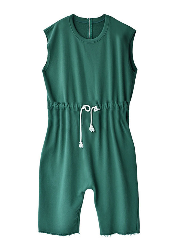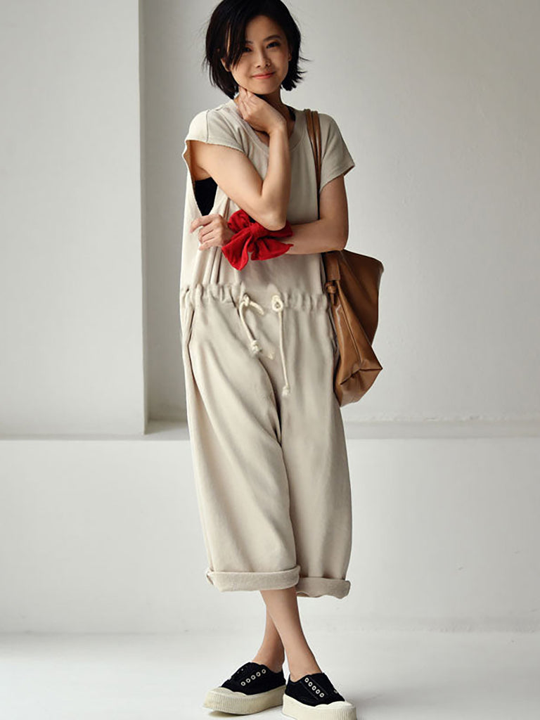 Plus Size - 100% Cotton Solid Color Drawstring Jumpsuits