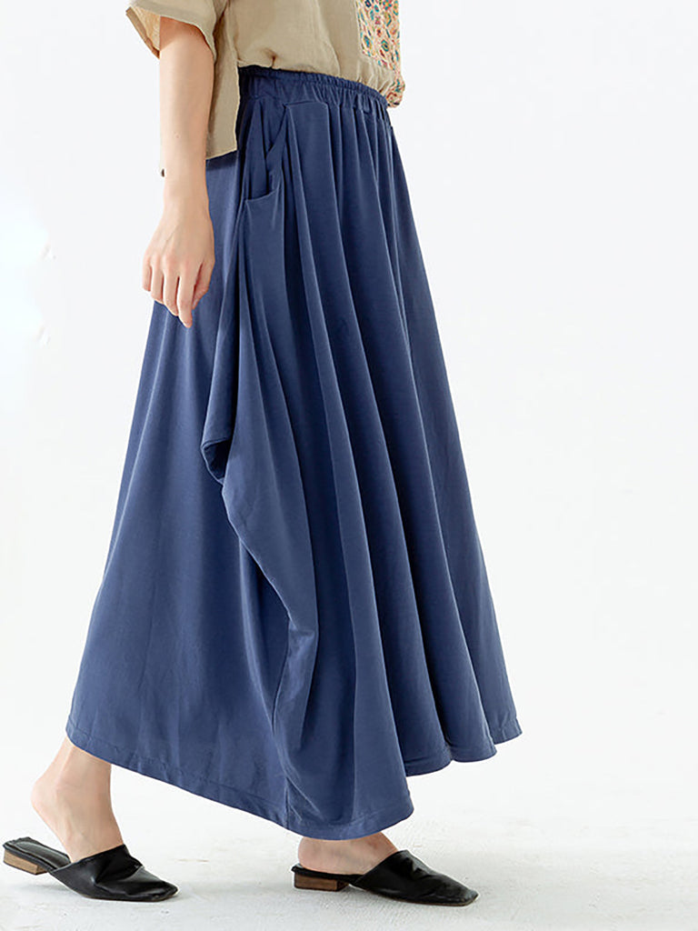 Plus Size - Women Solid Color Pocket Elastic Waist Skirt