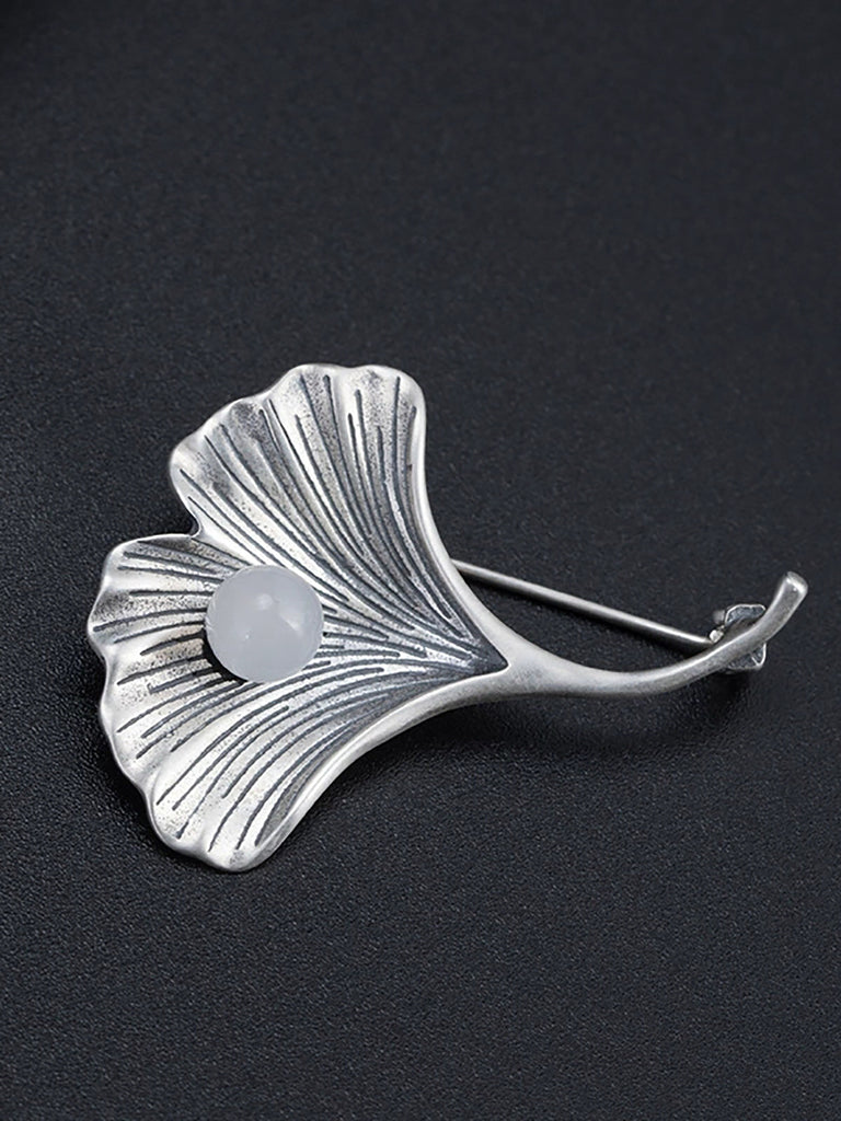 Vintage S925Silver Ginkgo Jade Brooch