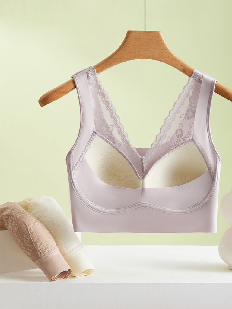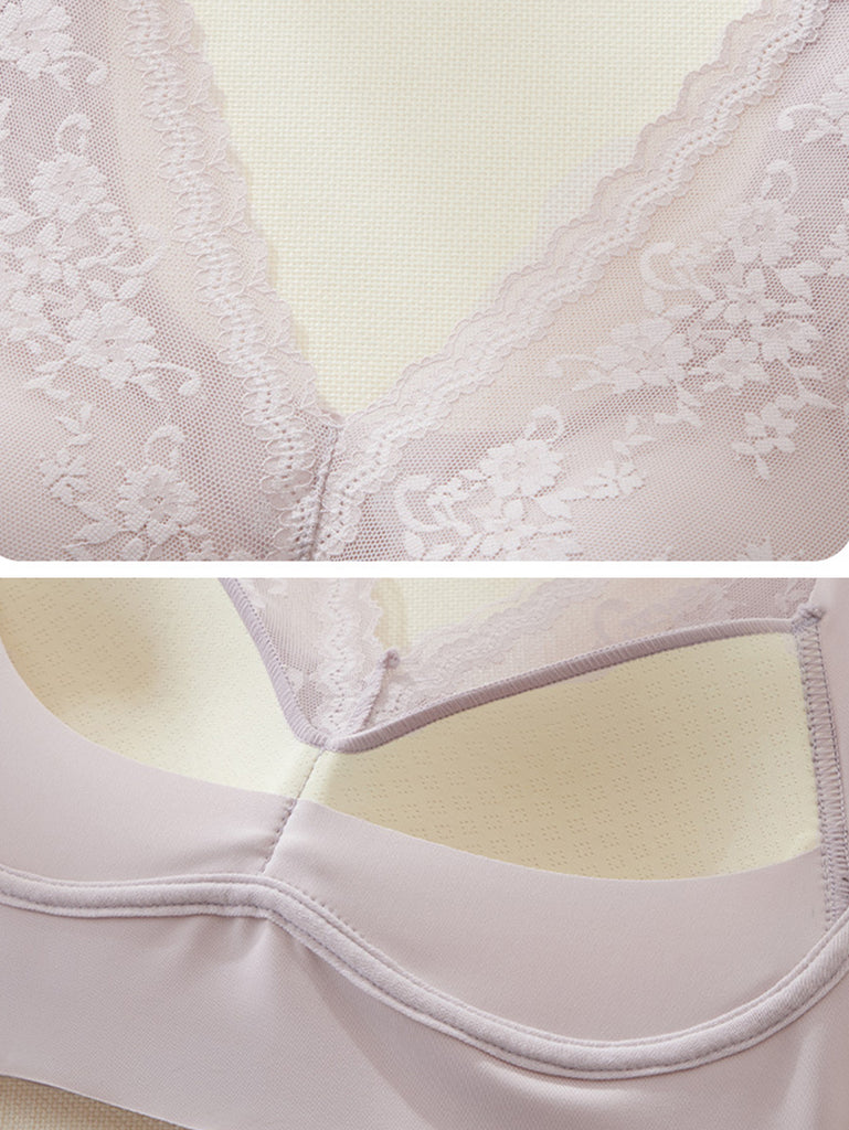 Women Artsy Pure Color Lace Satin Seamless Bra