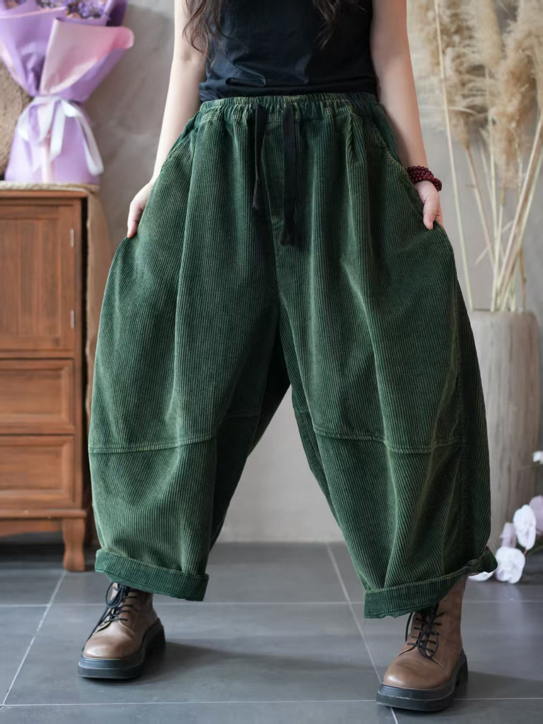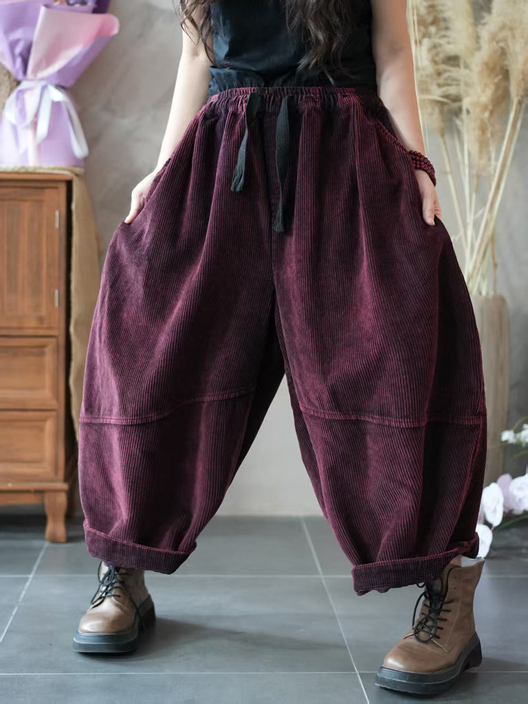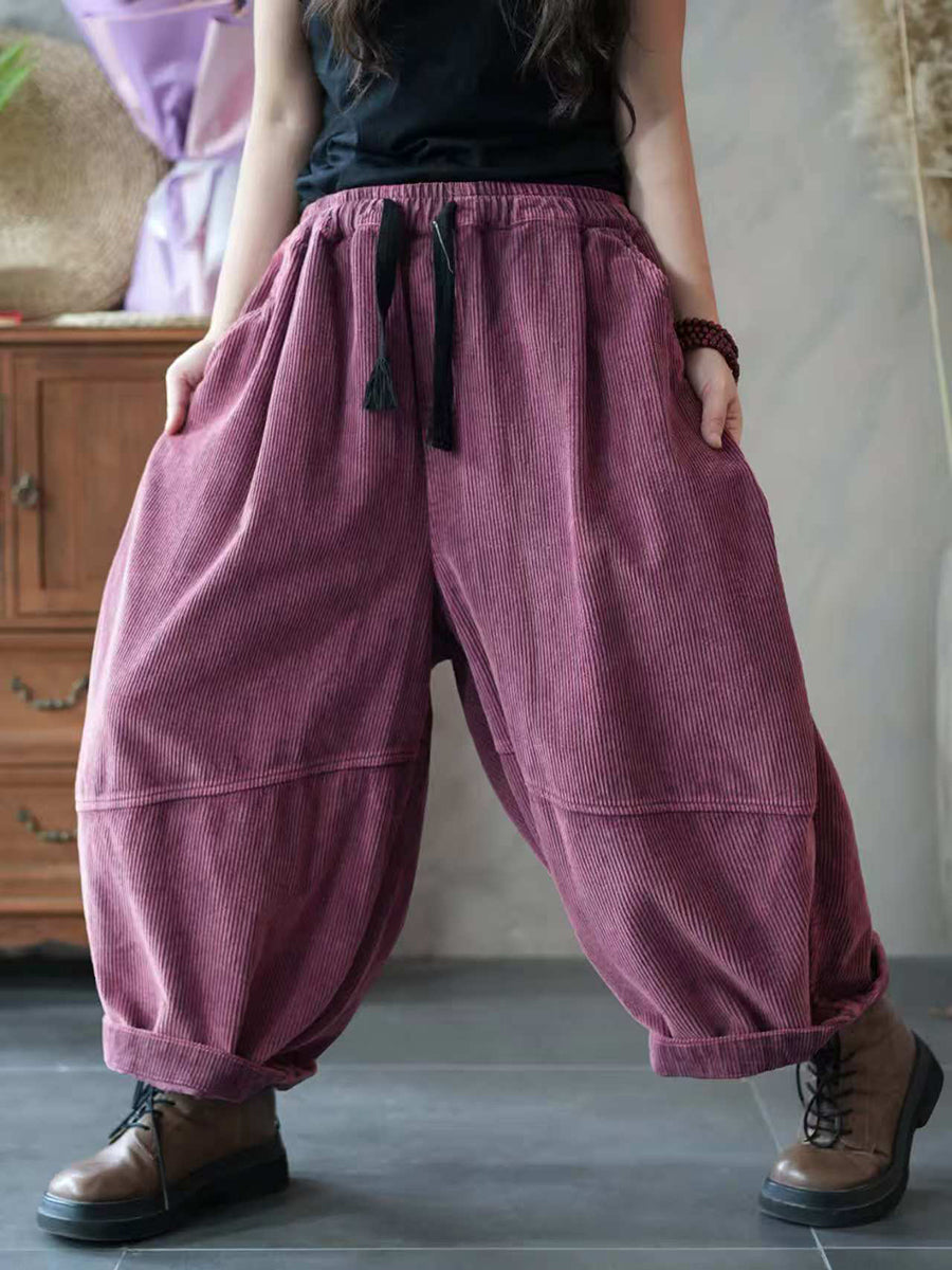 Women Autumn Pure Color Spliced Corduroy Harem Pants