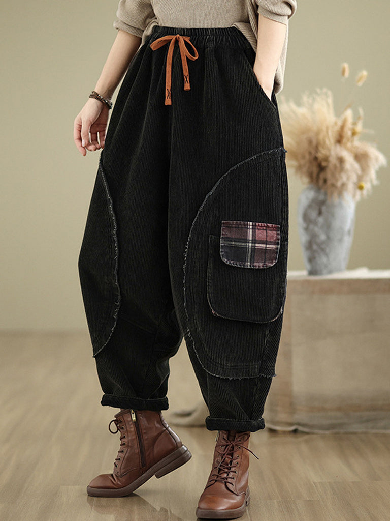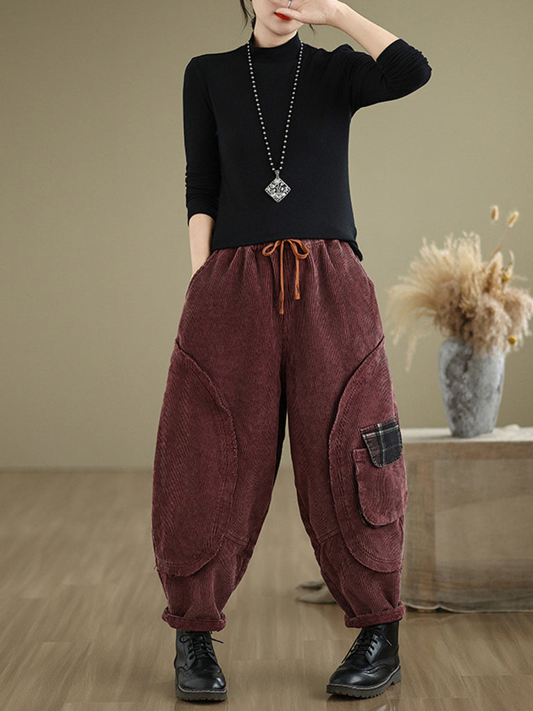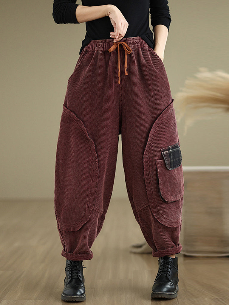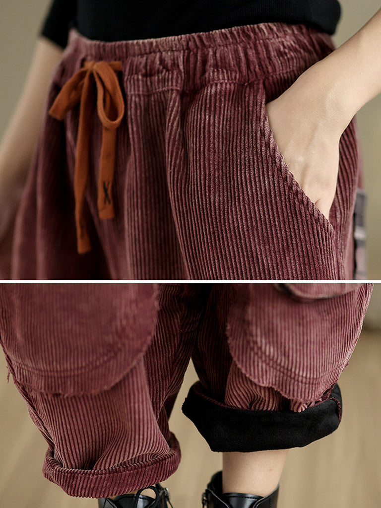 Women Autumn Retro Pure Color Corduroy Harem Pants