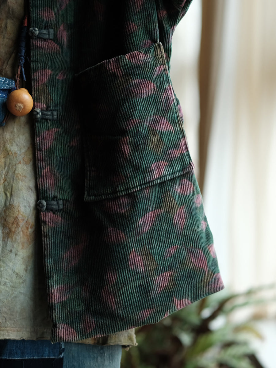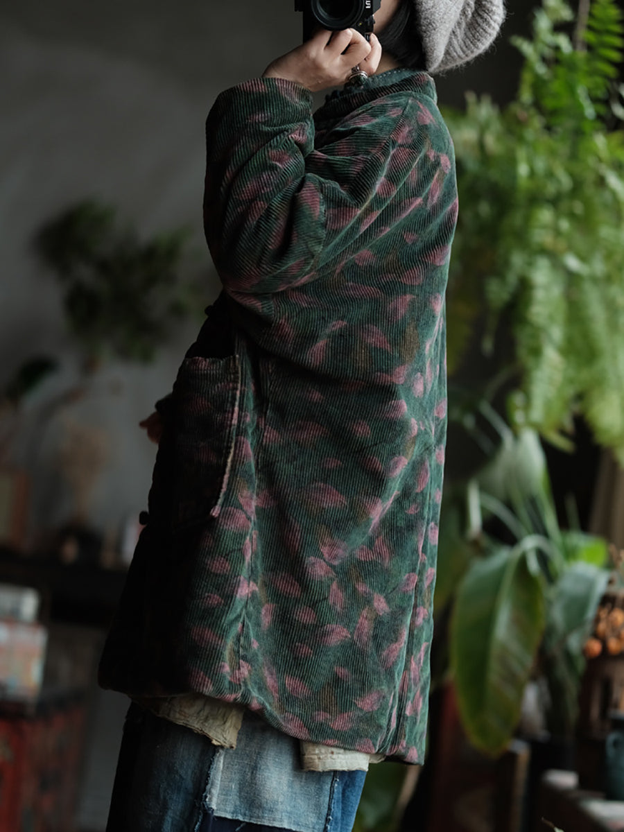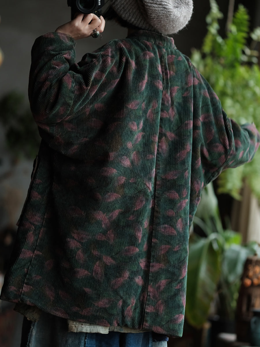 Women Ethnic Leaf Corduroy Loose Padded Coat
