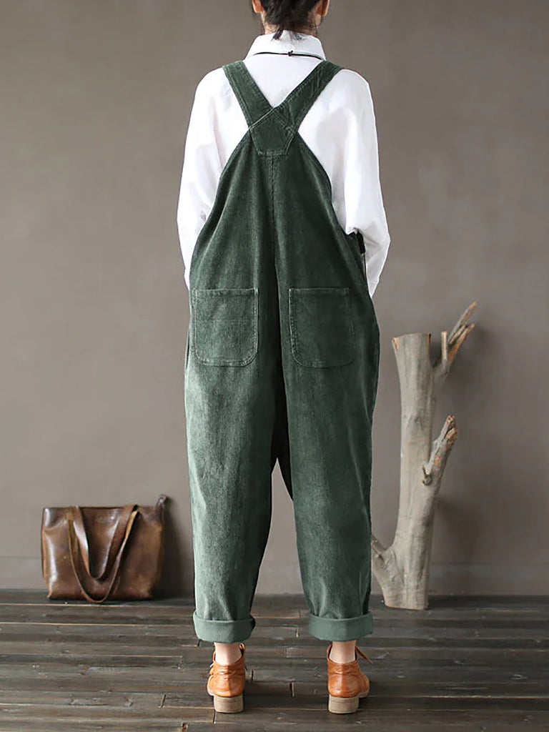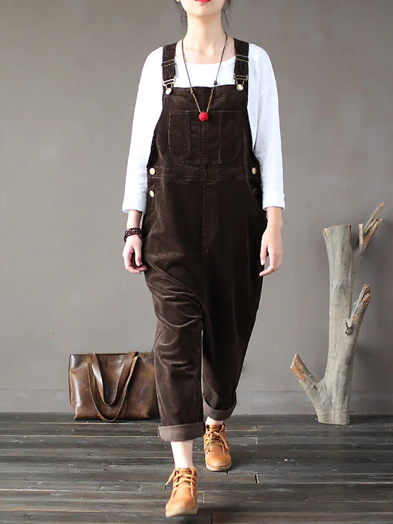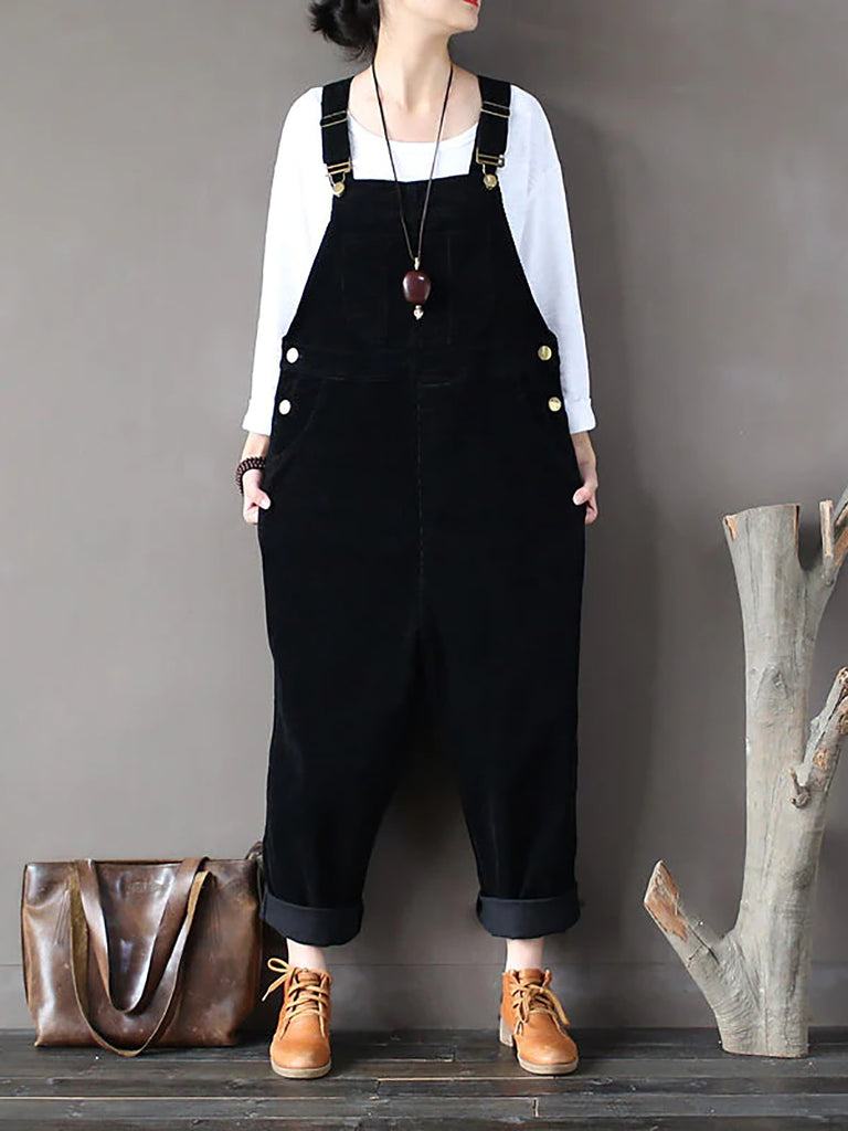 Plus Size Women Solid Color Corduroy Jumpsuits