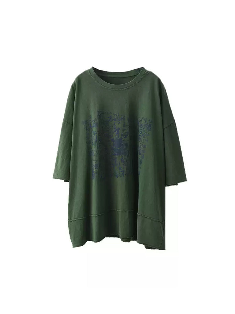 Women Summer Vintage Print O-Neck 100%Cotton Shirt