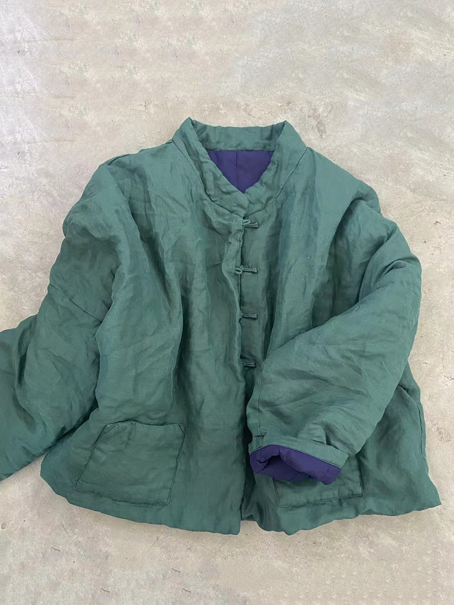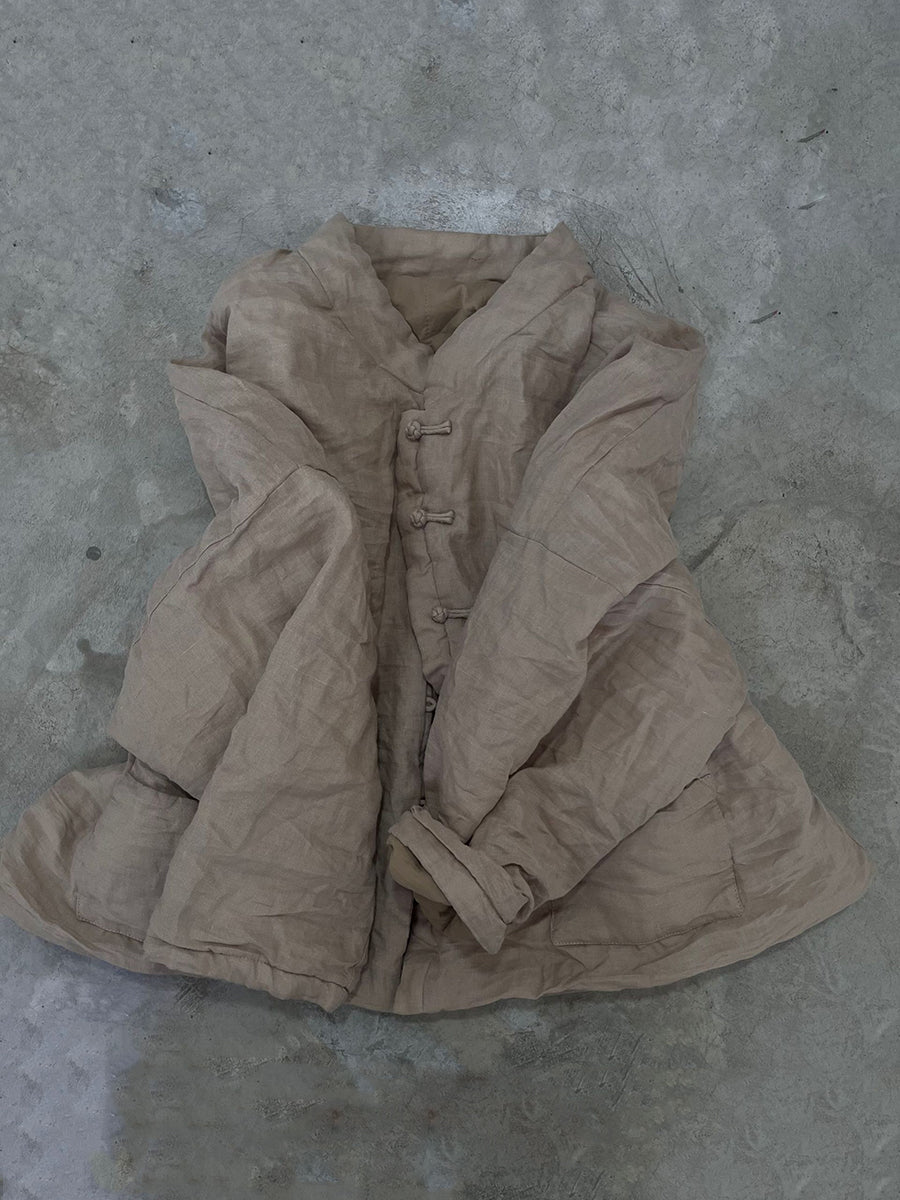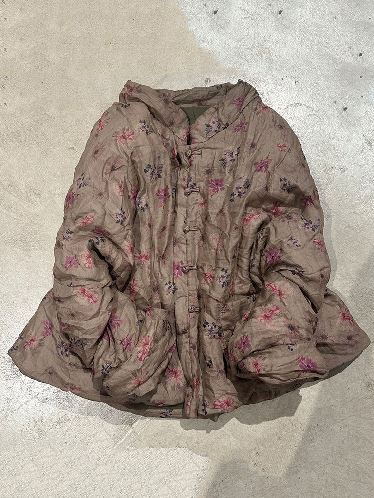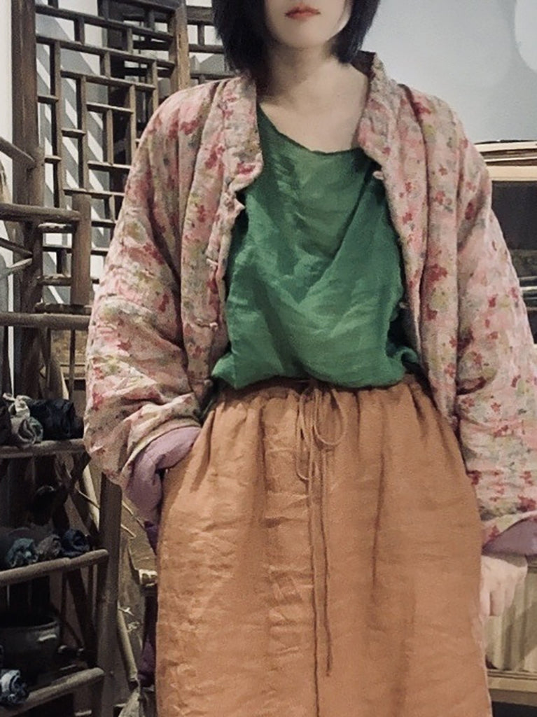 Women Vintage Autumn Floral Button-up Ramie Coat