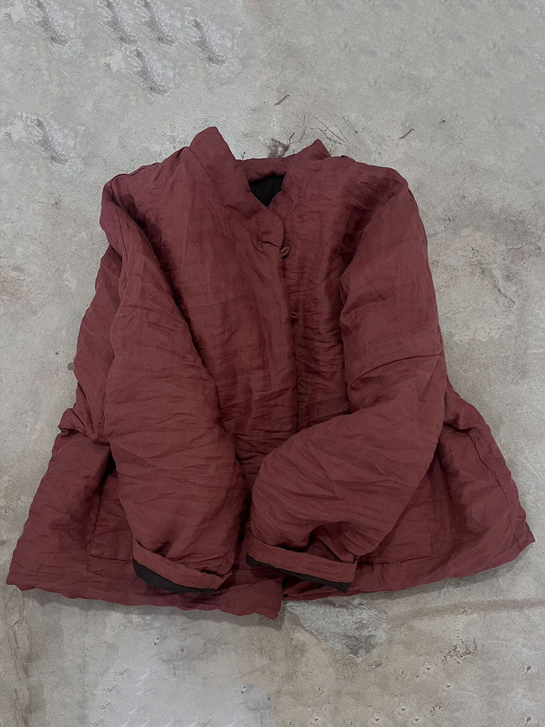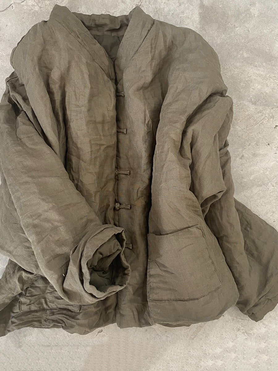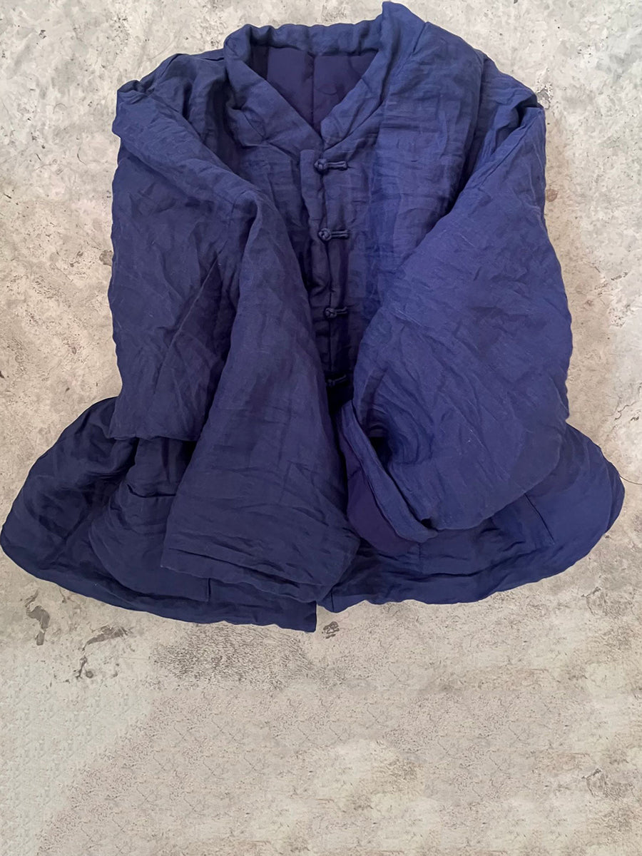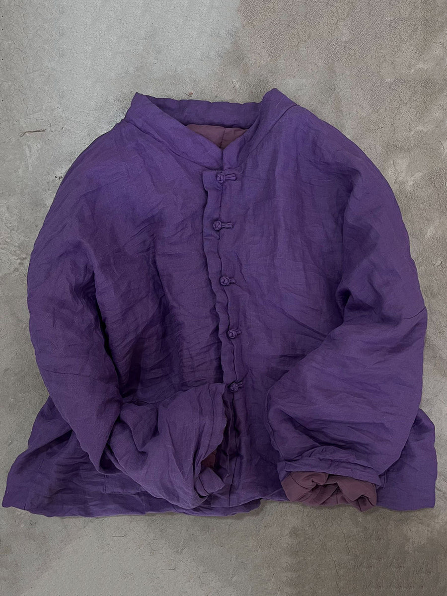 Women Vintage Autumn Floral Button-up Ramie Coat