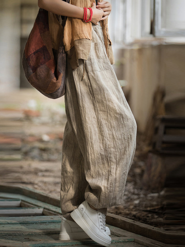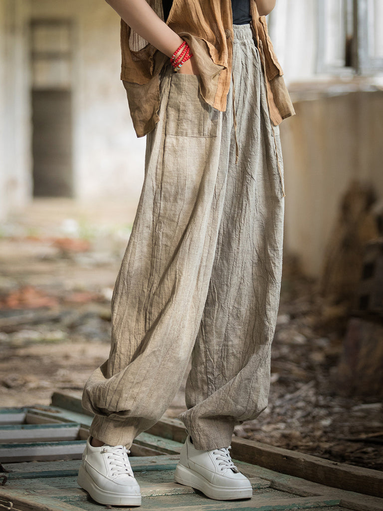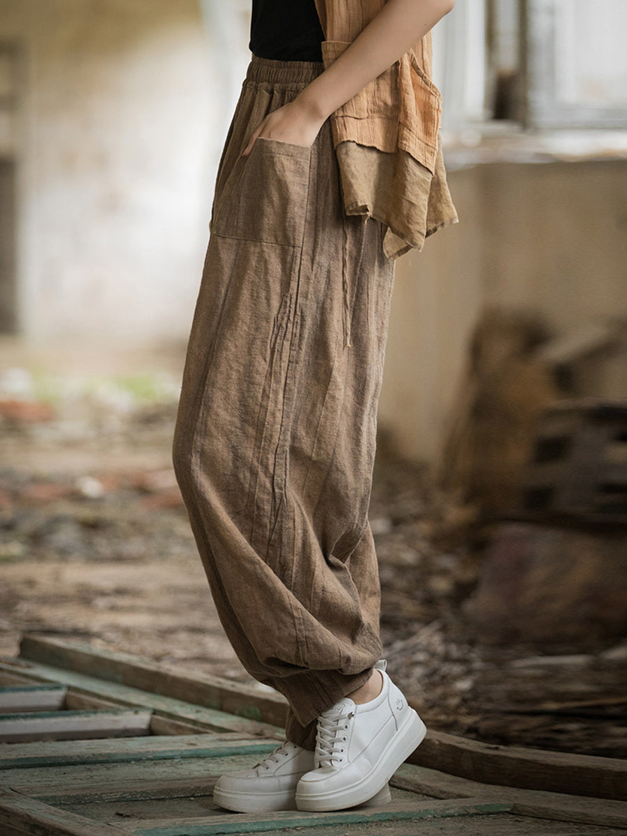 This product is creating a retro style. The waist is elastic and the pants feature a tie-dye pattern, giving them a harem fit. The pants are full length and suitable for wear in both the spring and autumn seasons.