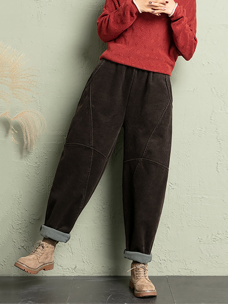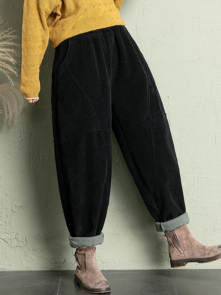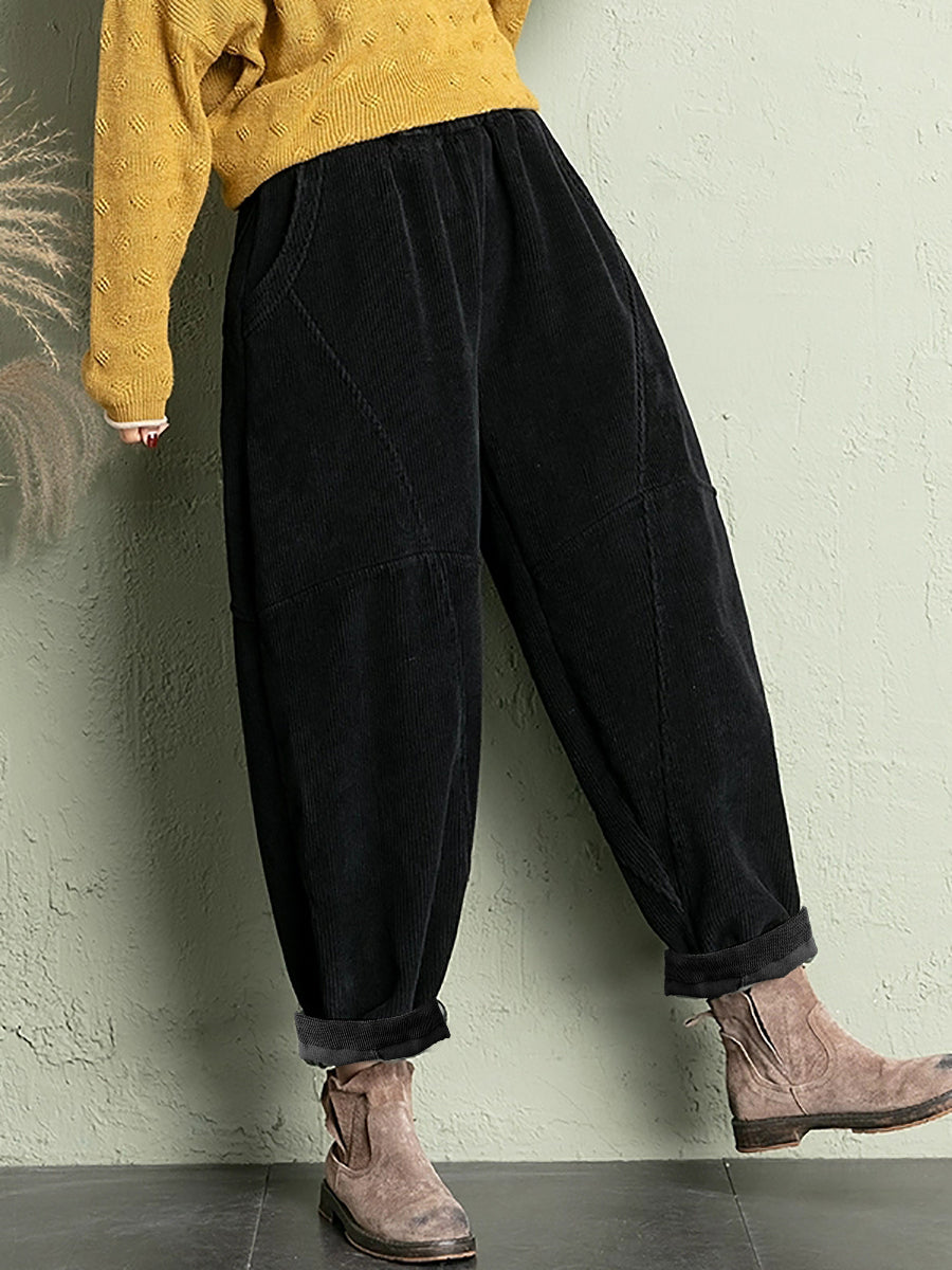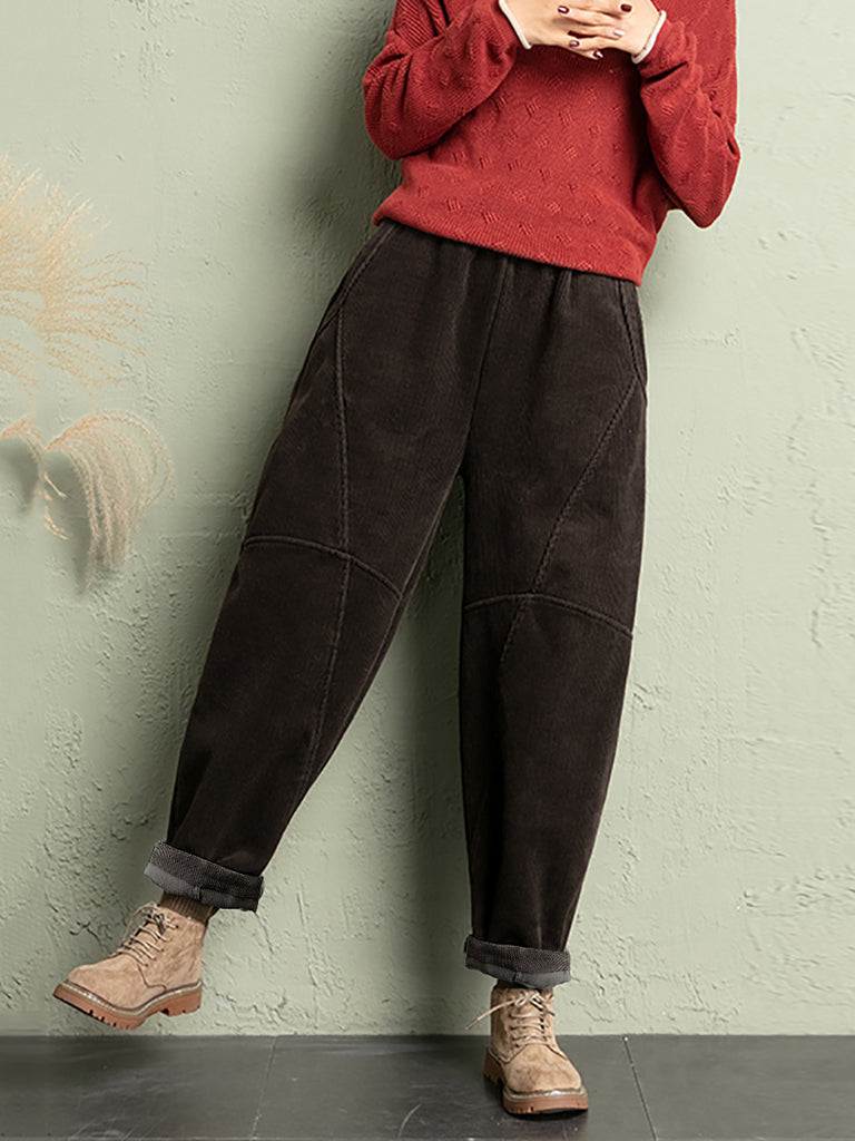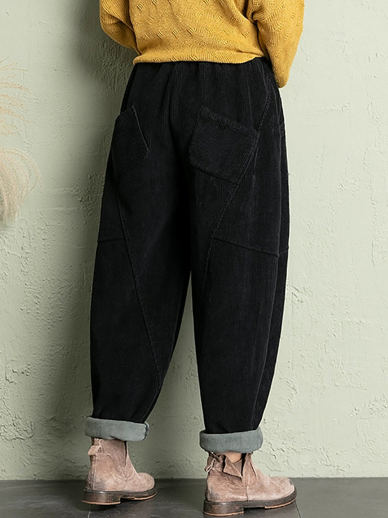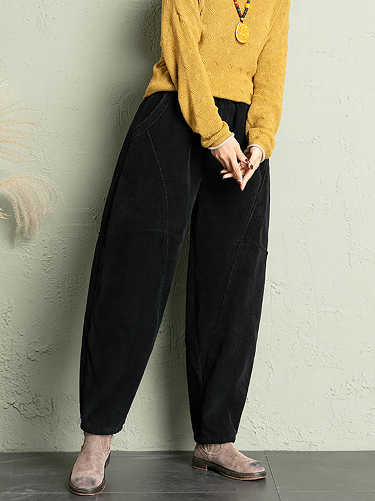 Plus Size Women Winter Casual Pure Color Corduroy Harem Pants