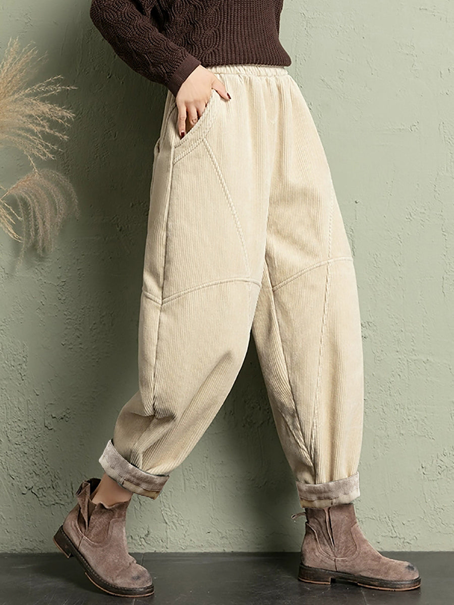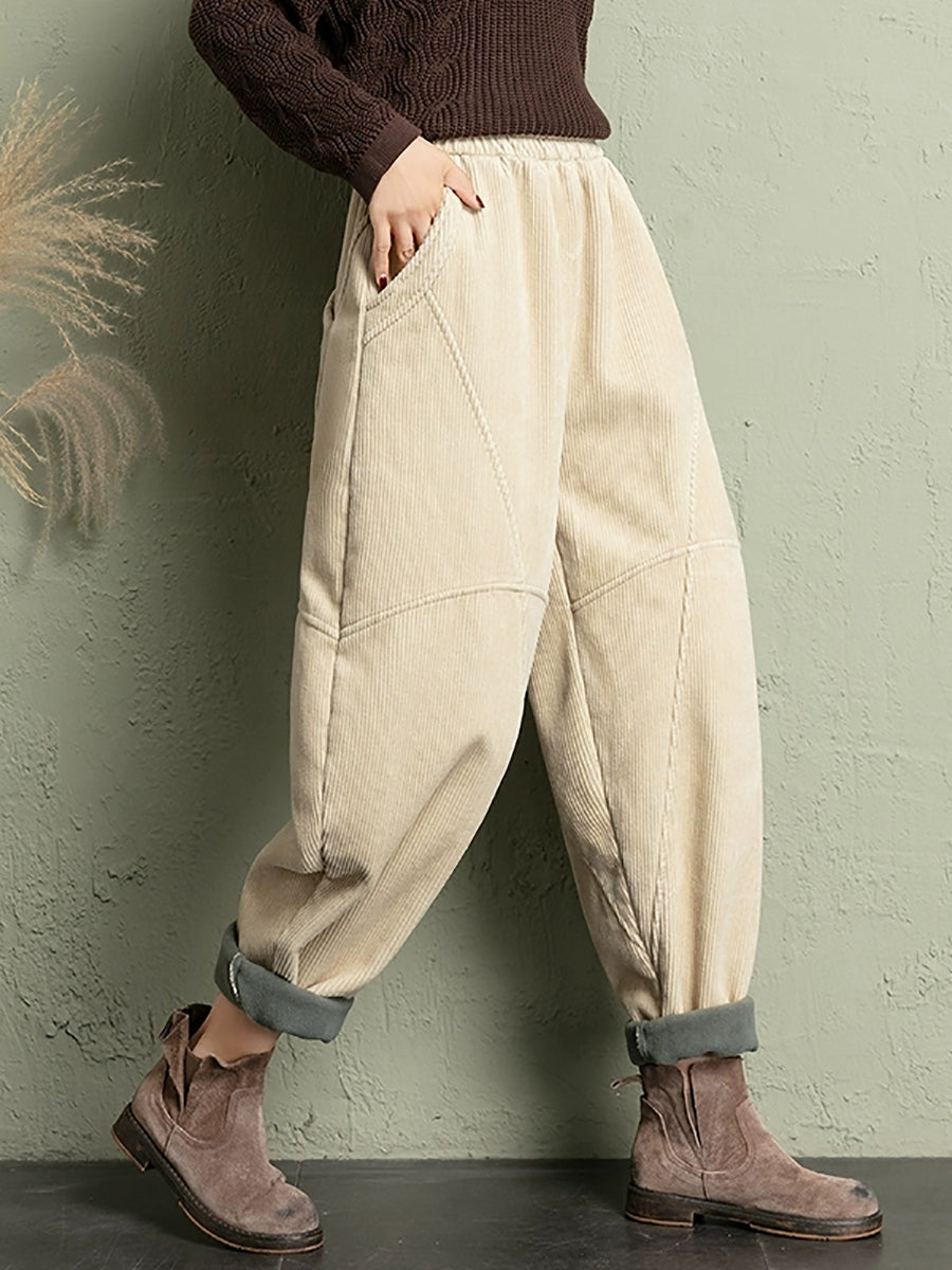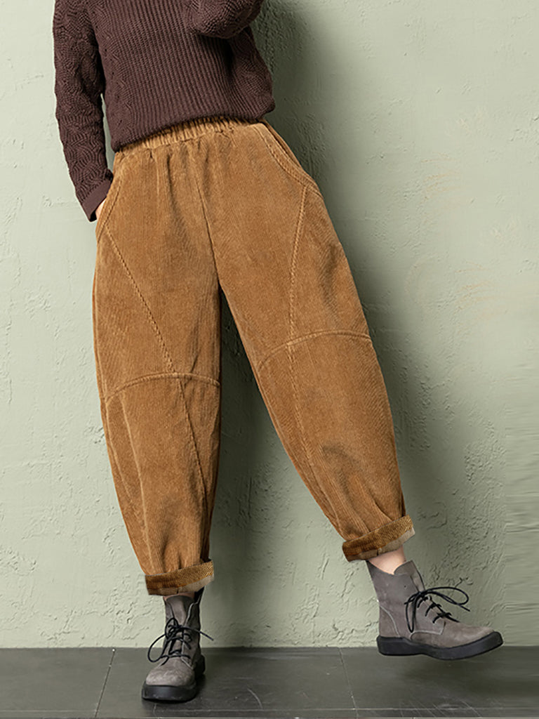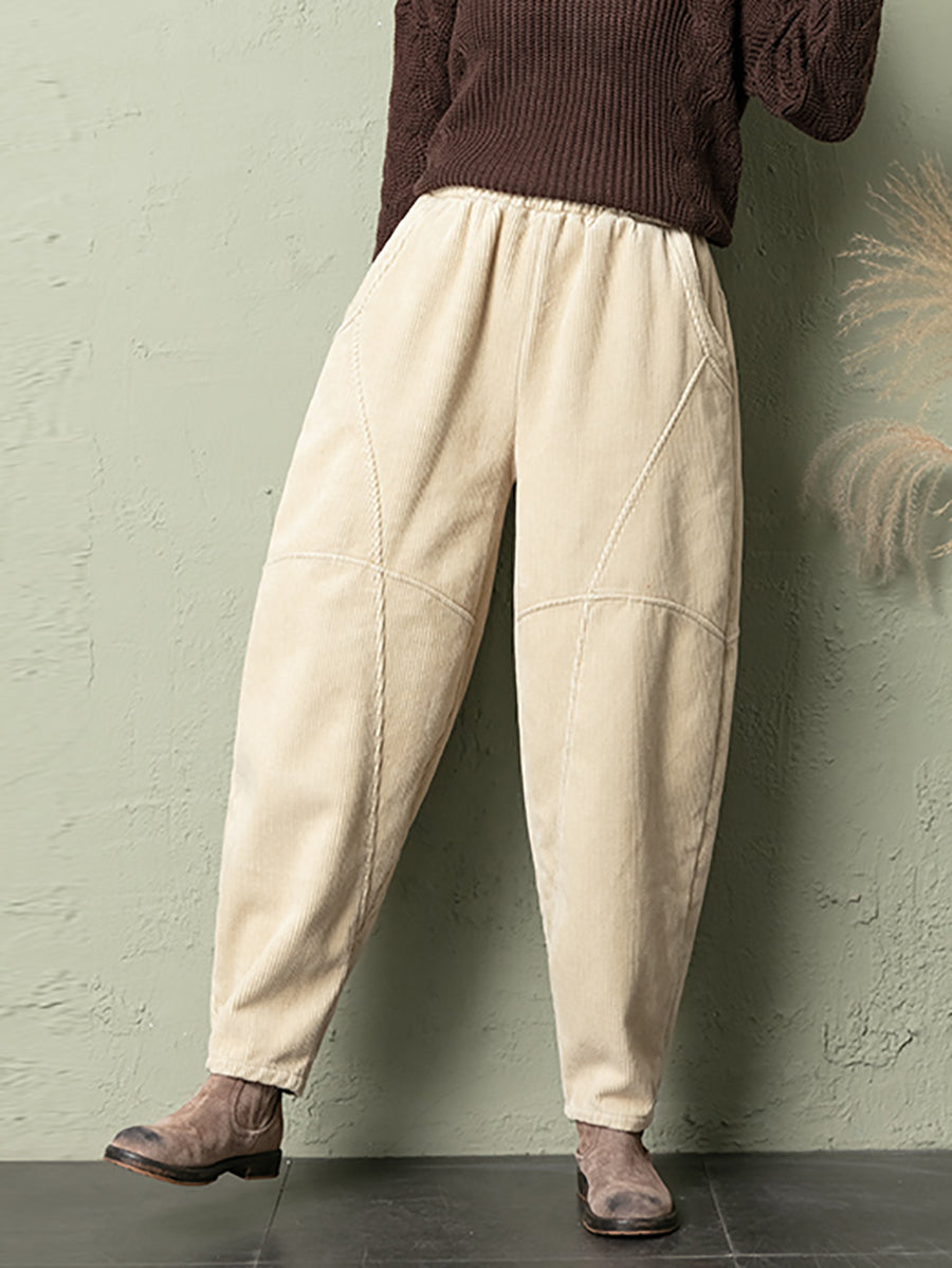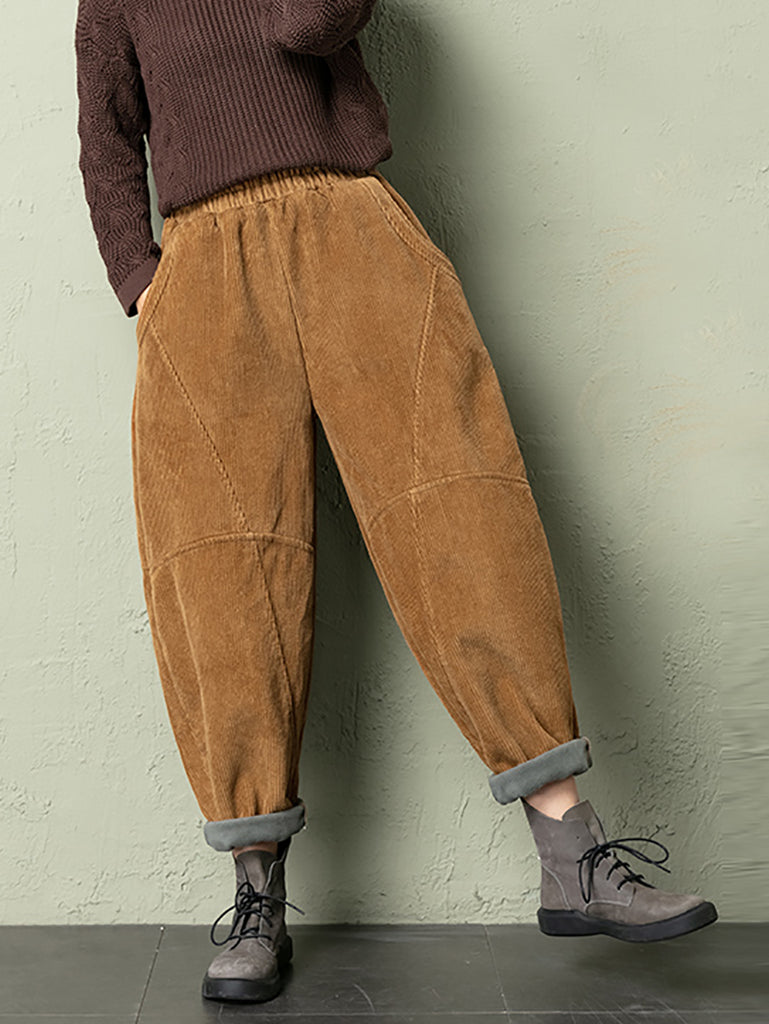 Plus Size Women Winter Casual Pure Color Corduroy Harem Pants