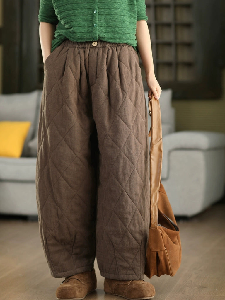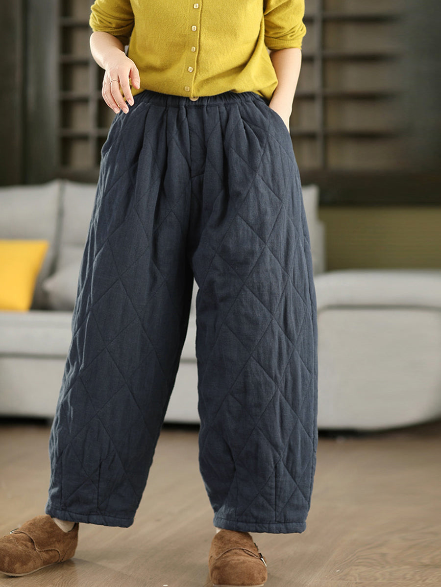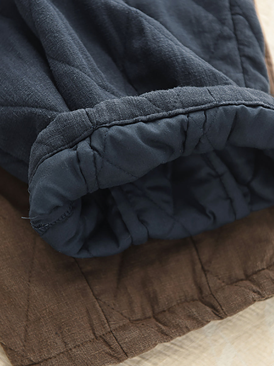Women Winter Pure Color 100%Hemp Padded Harem Pants