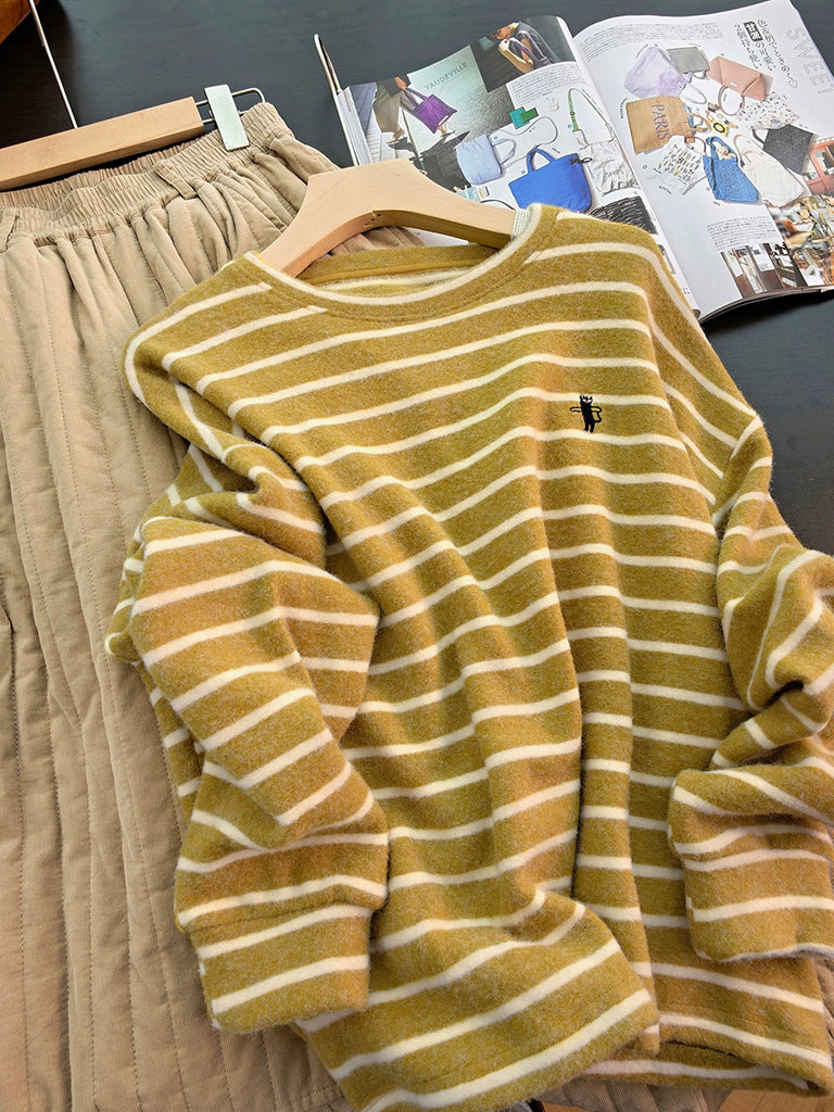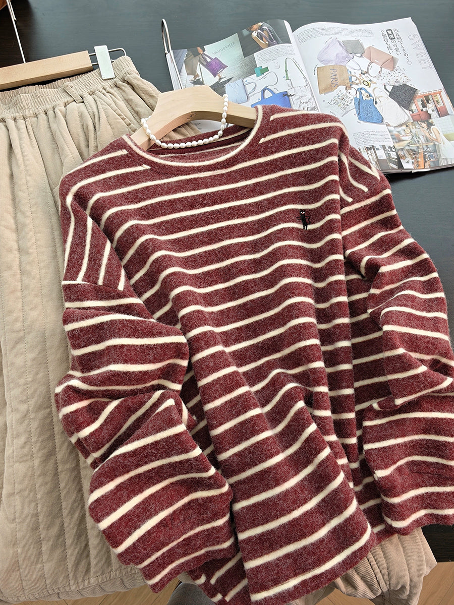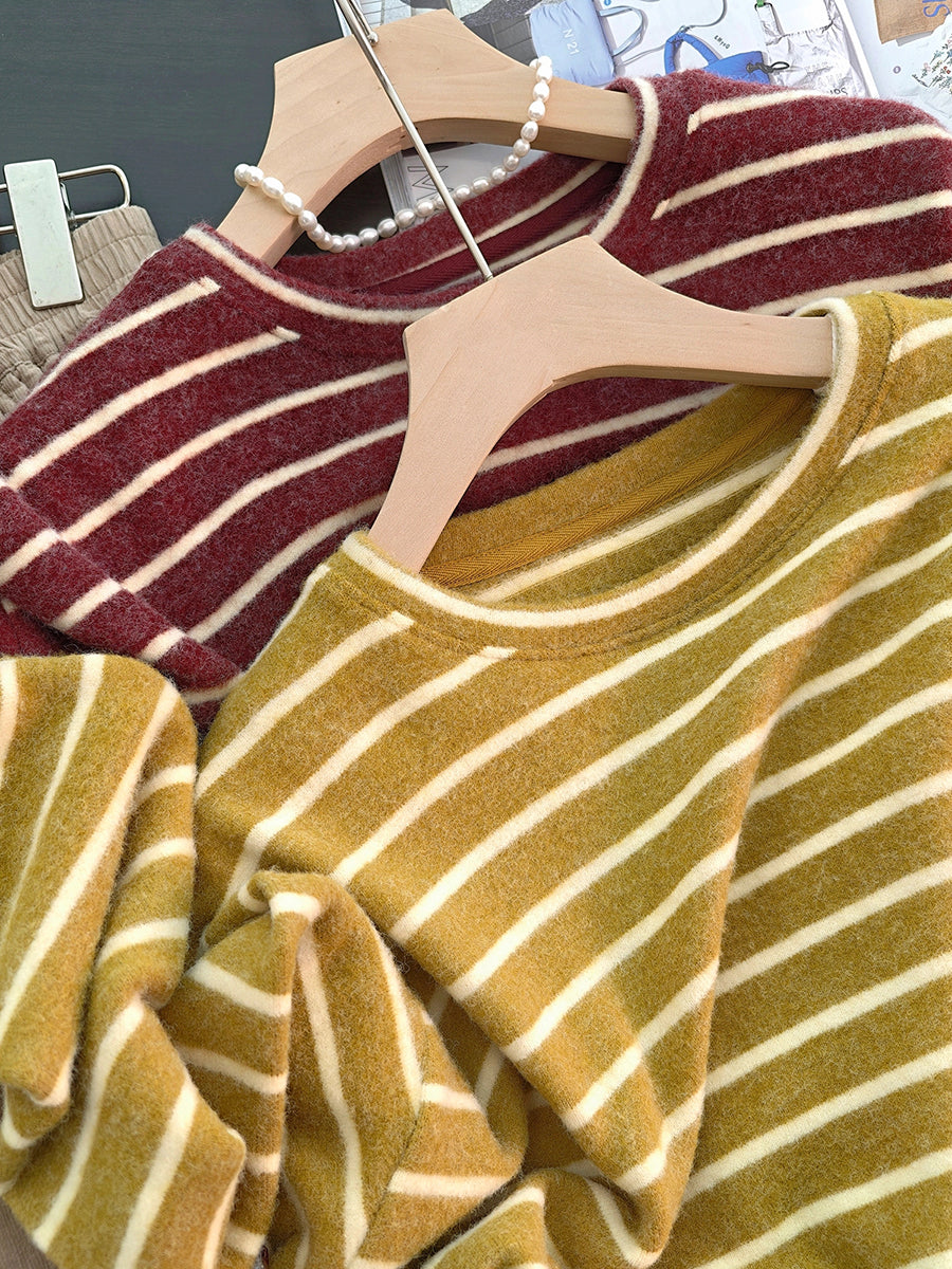 Women Winter Retro Stripe O-Neck Blouse